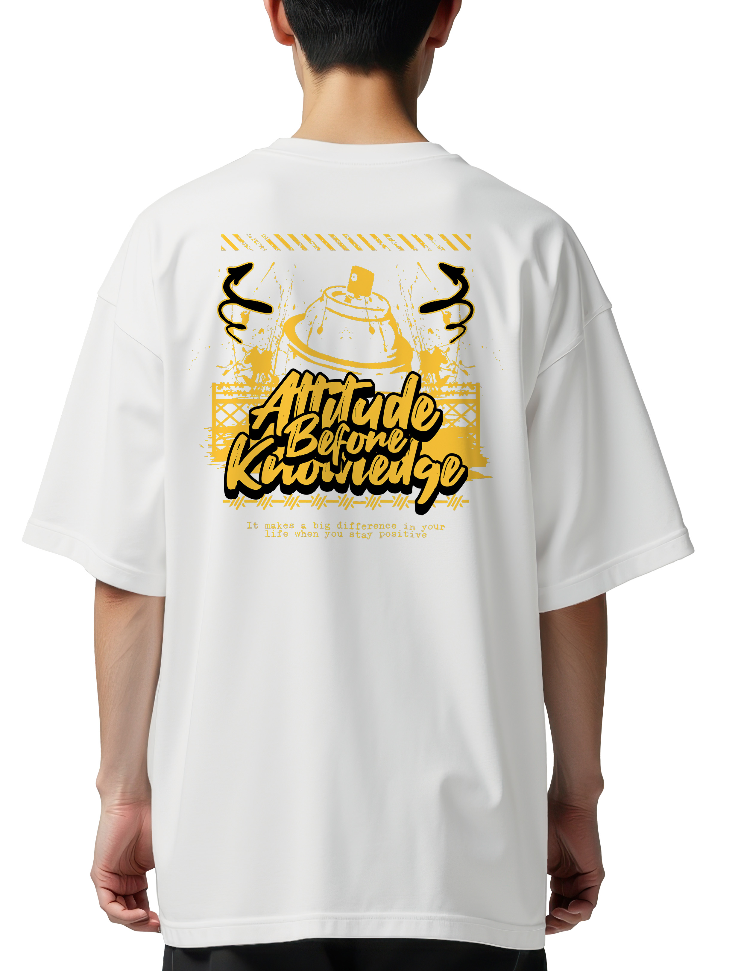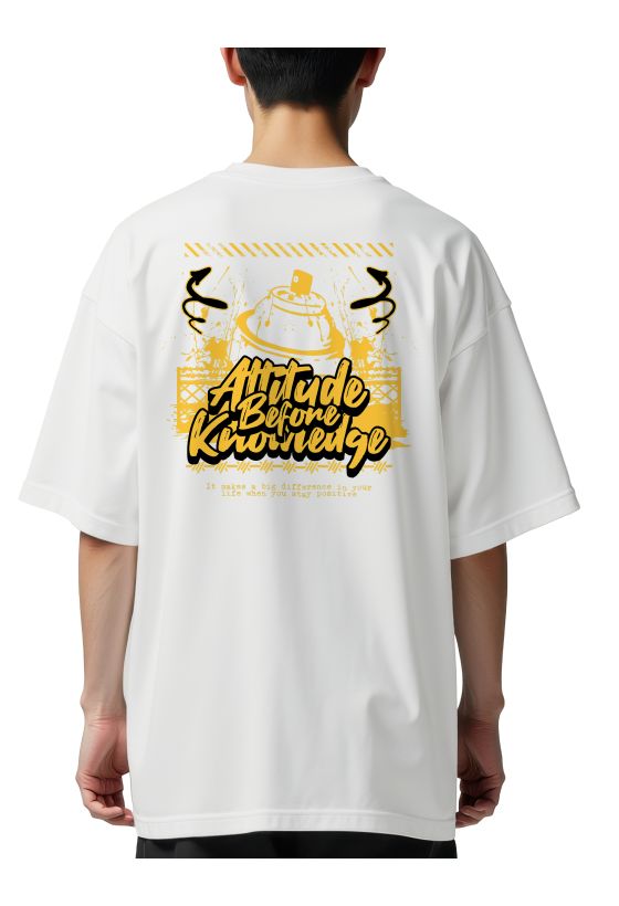Oversized T-Shirt Attitude Before Knowledge Pop Culture White