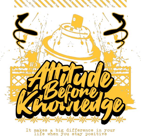 Κείμενο «Στάση πριν από τη γνώση» σε γκράφιτι ύφος. Σχόλιο για θετικότητα.