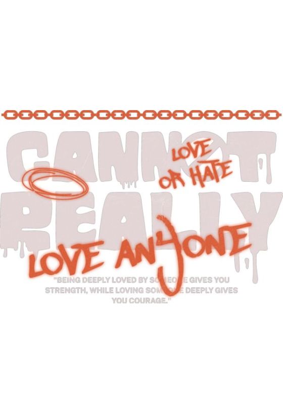 Κείμενο «CANNOT REALLY» και «LOVE OR HATE» σε πορτοκαλί spray. Μοτίβο αλυσίδας και απόσπασμα για αγάπη και θάρρος.