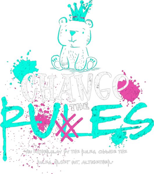 Στυλιζαρισμένη αρκούδα με στέμμα. Κείμενο: «CHANGE THE RULES». Απόσπασμα για ελευθερία και ενδυνάμωση.