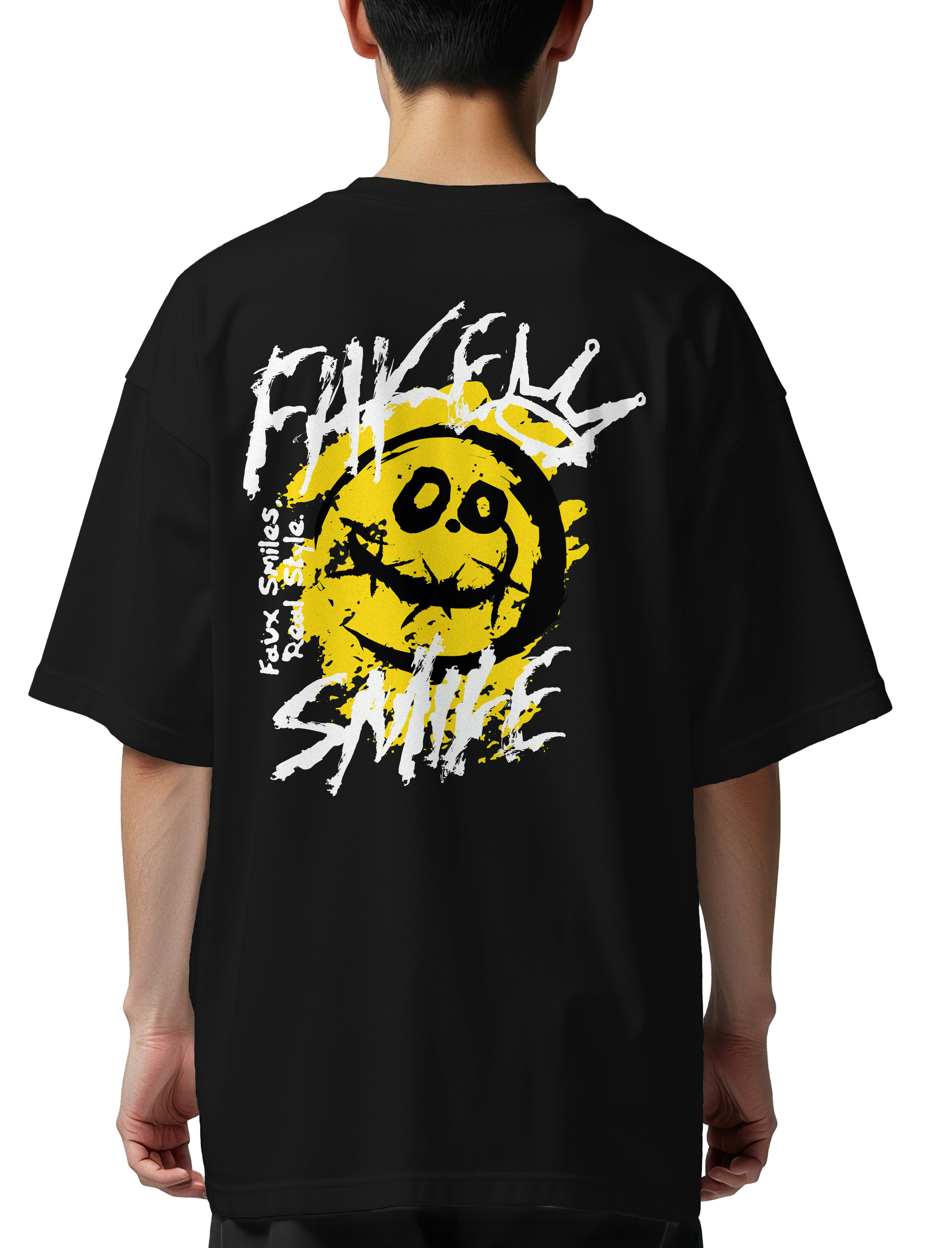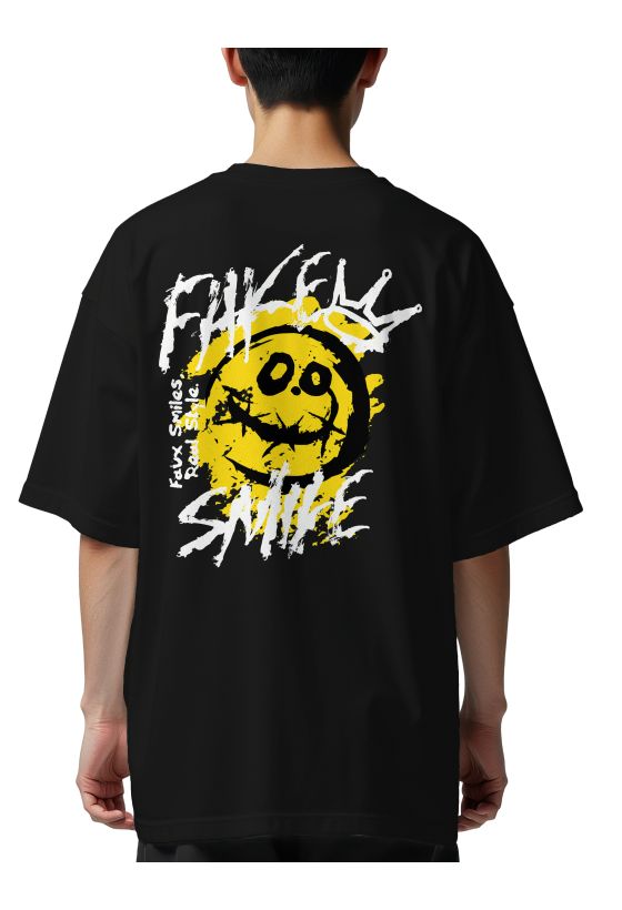 Oversized T-Shirt Fake Smile Pop Culture Black