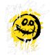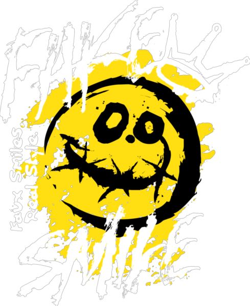 Κίτρινο χαμογελαστό πρόσωπο με απειλητικό χαμόγελο. Κείμενα: «FAKE SMILE», «Faux Smiles. Real Style.». Αντικουλτούρα.