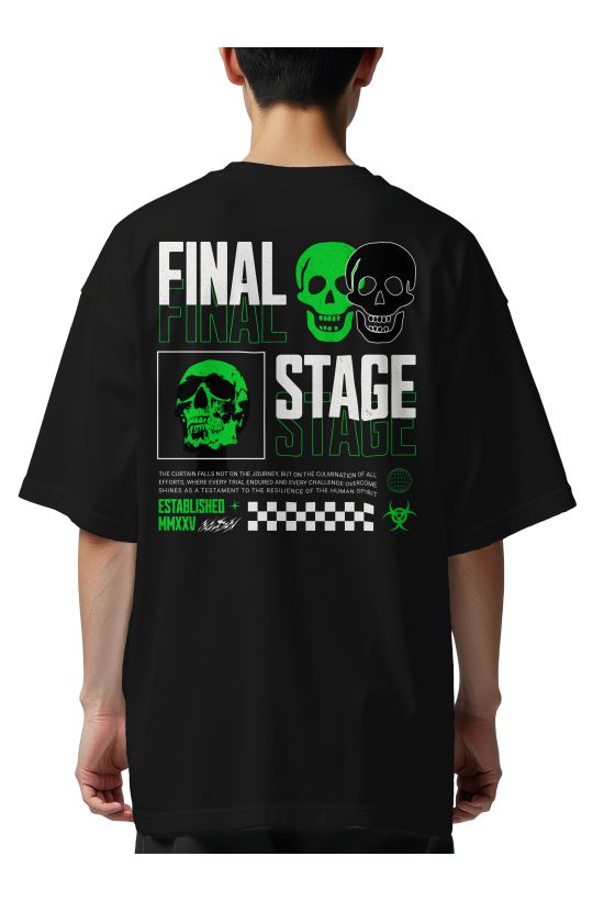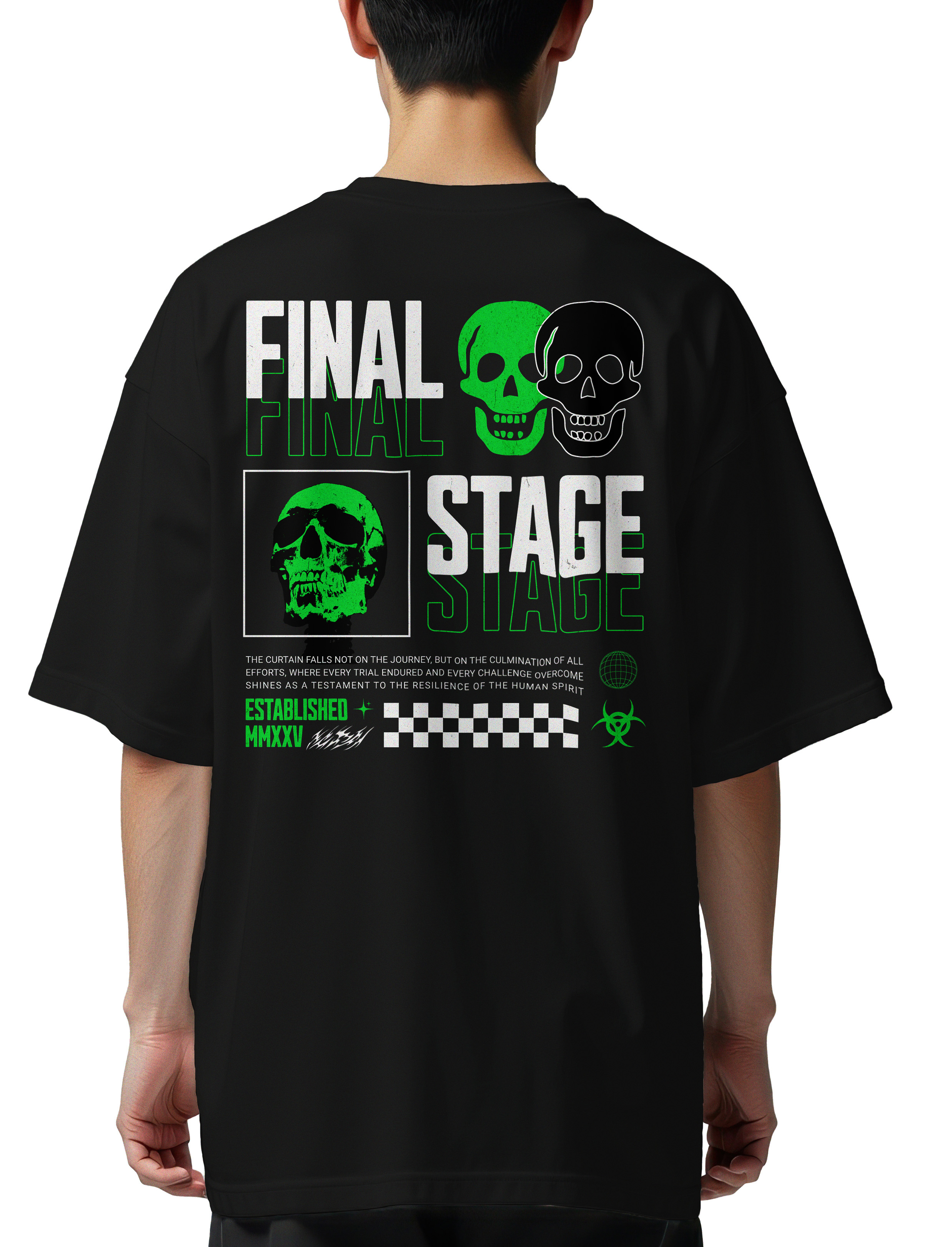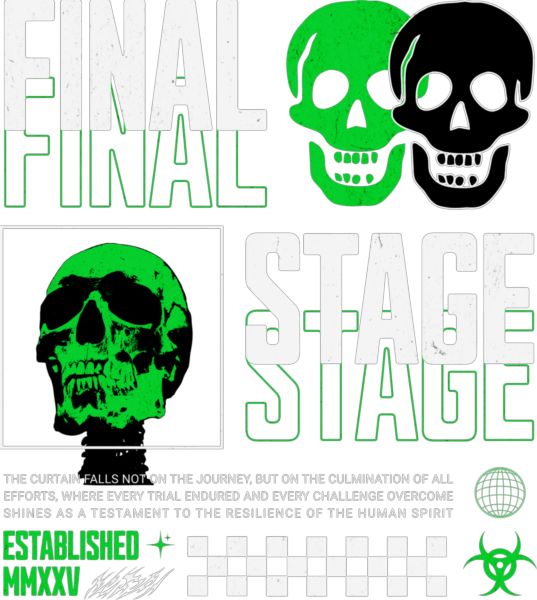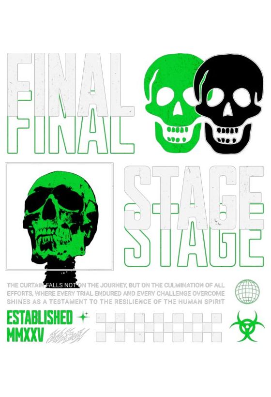 Κρα skulls με πράσινο νέον, κείμενο «FINAL STAGE» και σύμβολα βιολογικού κινδύνου.