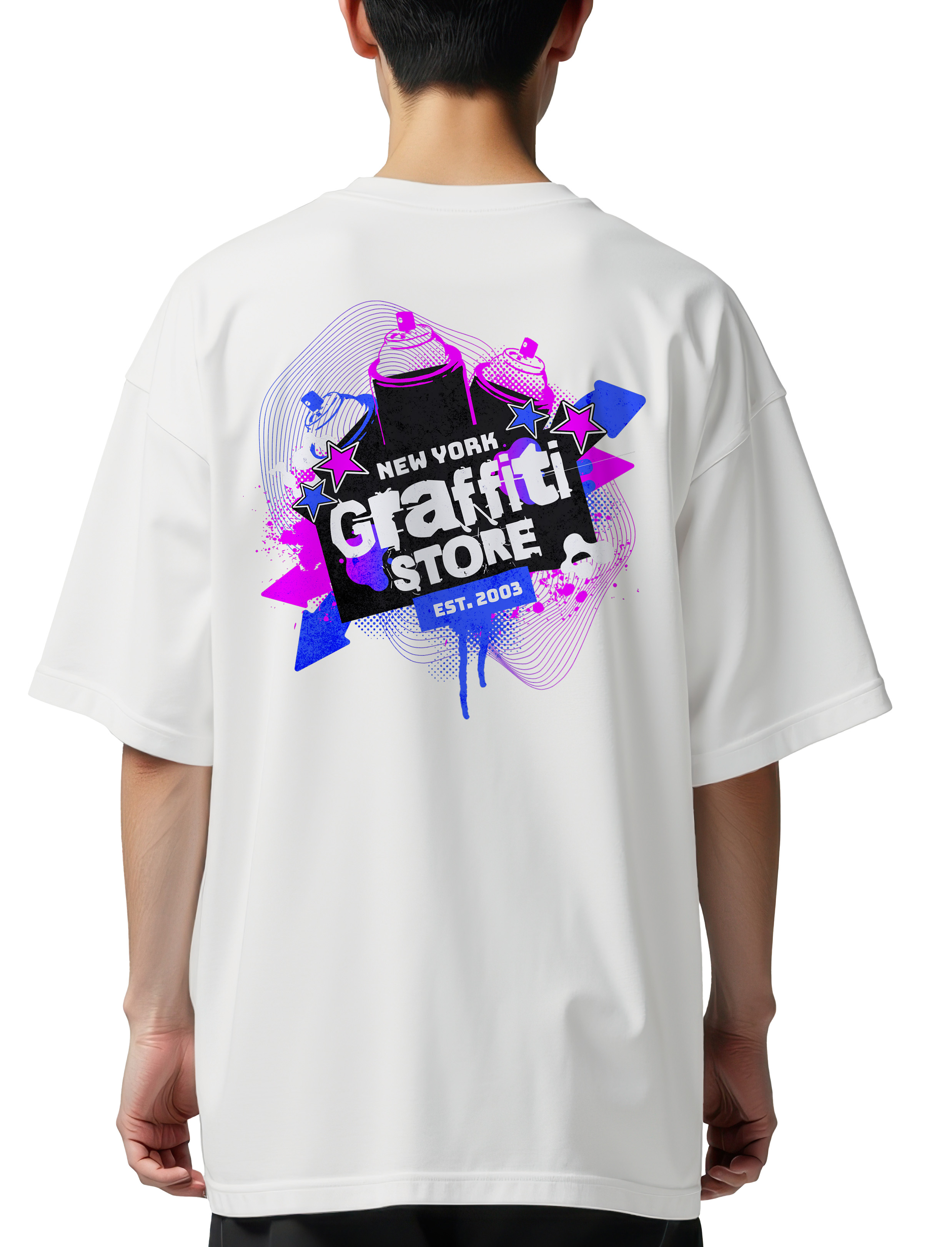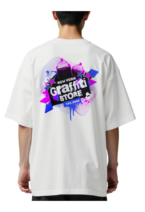 Oversized T-Shirt Graffiti Store - Neon Spray Paint Pop Culture White