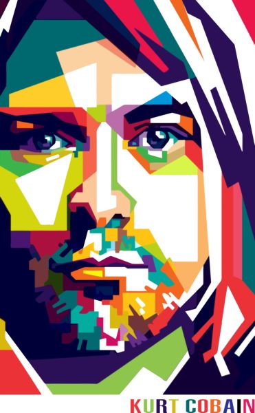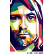WPAP πορτρέτο Kurt Cobain με γεωμετρικά χρώματα και το όνομά του.