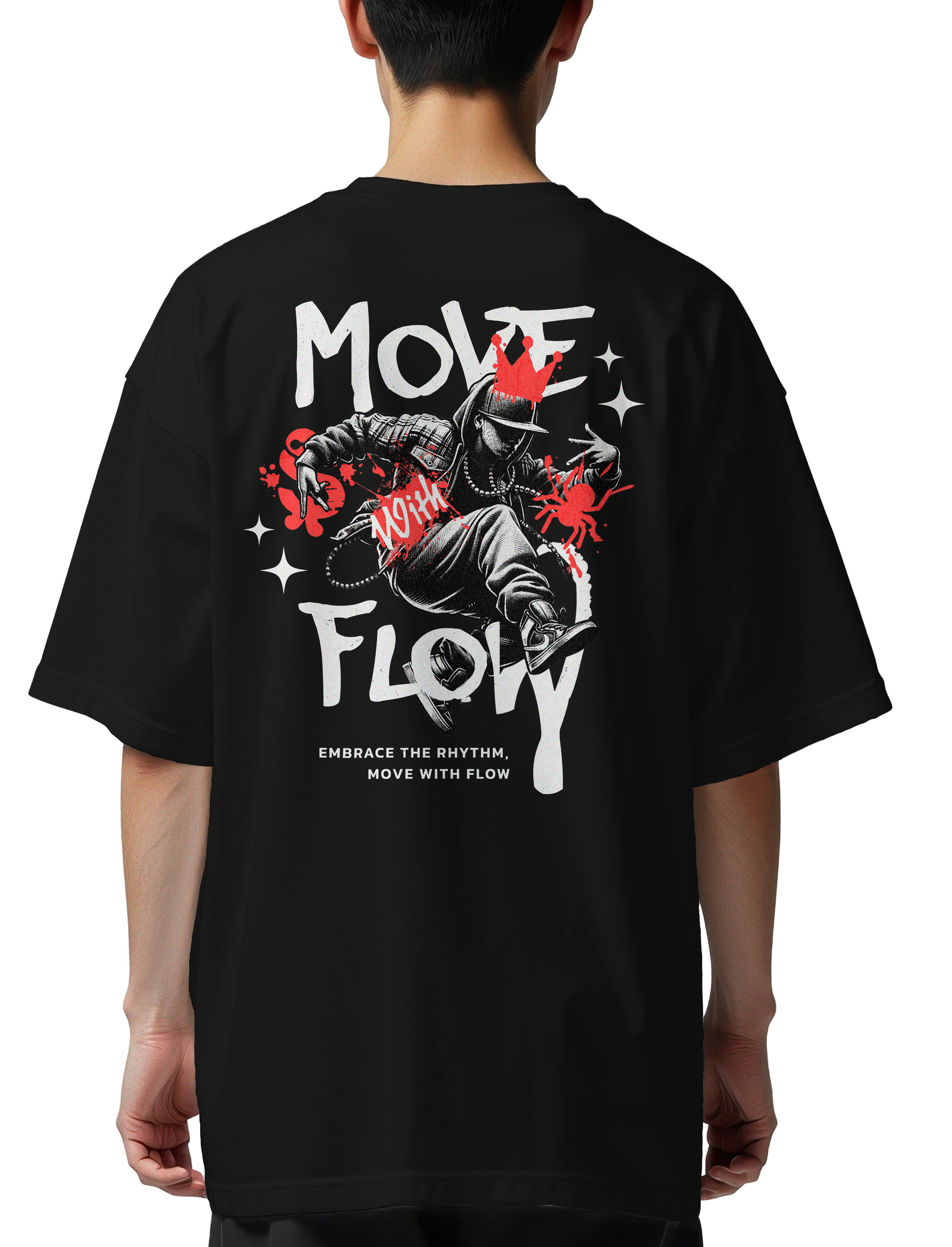 Oversized T-Shirt Move With Flow Pop Culture Black