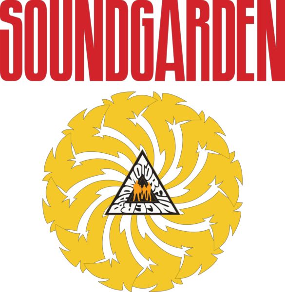Soundgarden λογότυπο με κίτρινο κυκλικό μοτίβο στροβιλισμού.