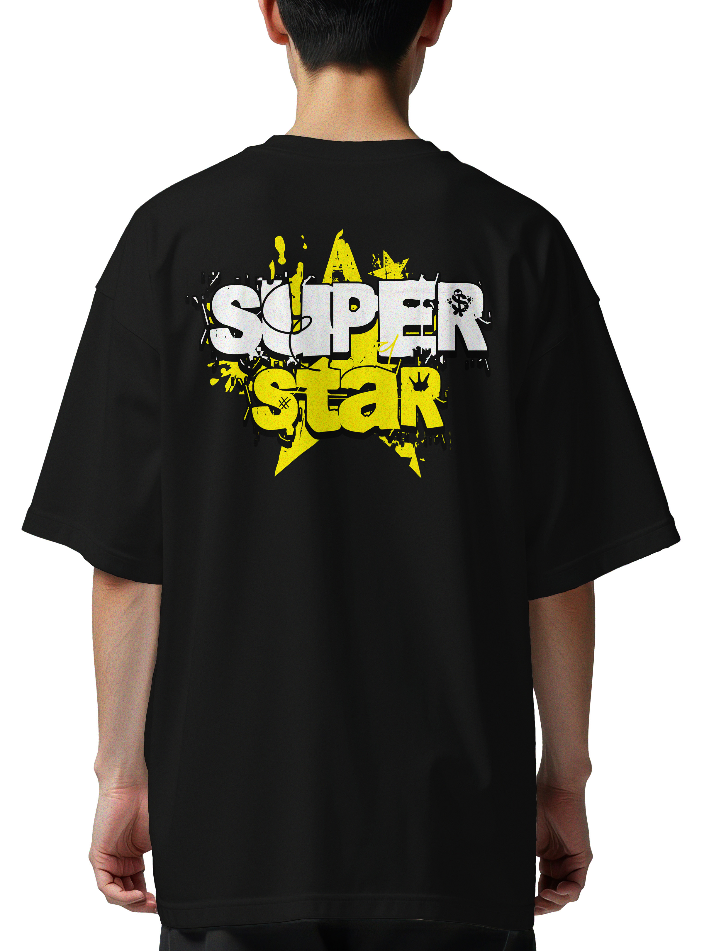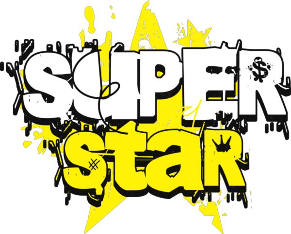 «SUPER STAR» σε κίτρινο αστέρι με γκράφιτι στοιχεία, στέμμα και δολάριο.