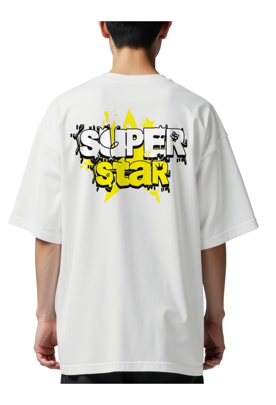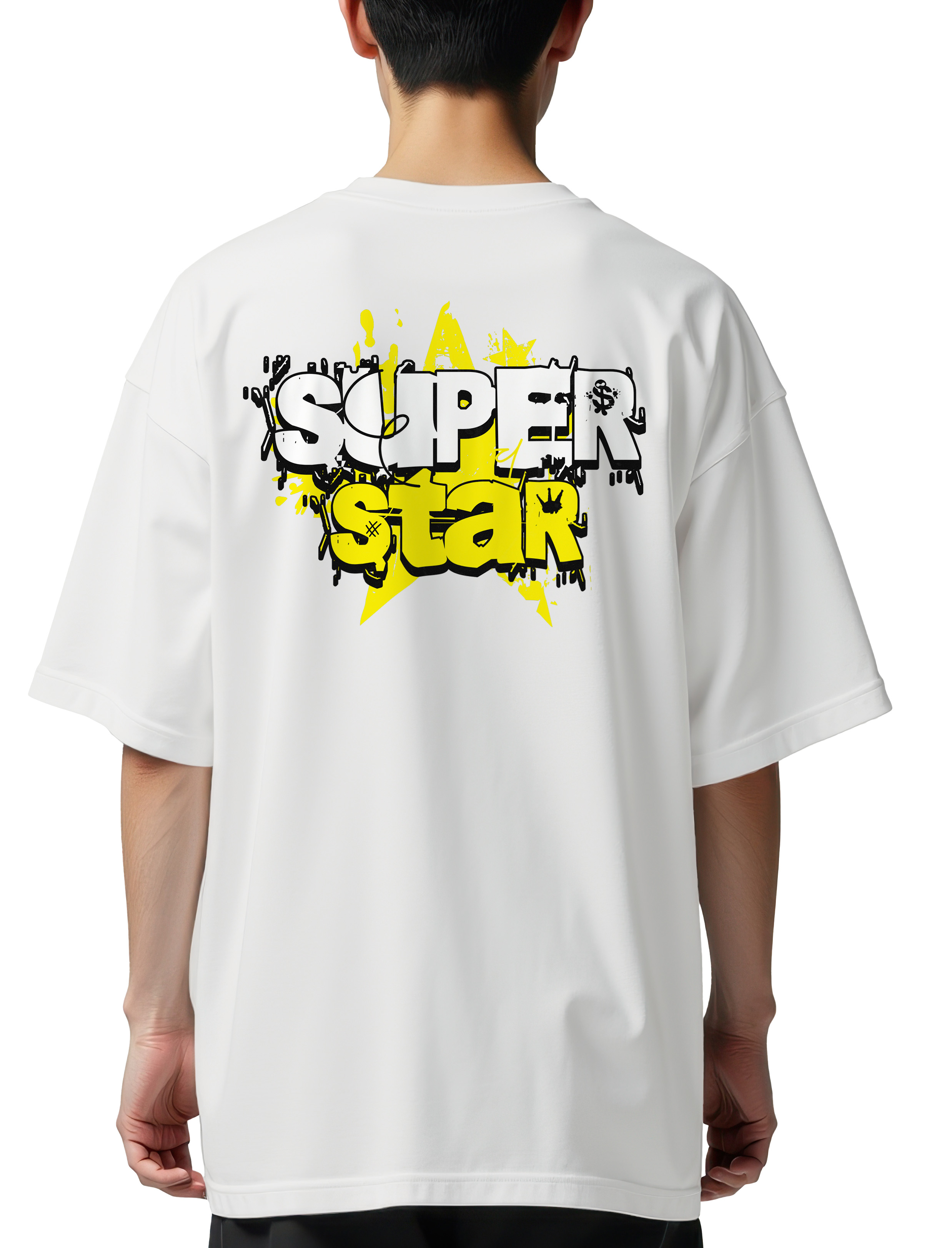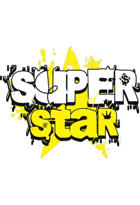 «SUPER STAR» σε κίτρινο αστέρι με γκράφιτι στοιχεία, στέμμα και δολάριο.