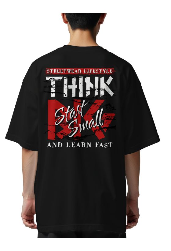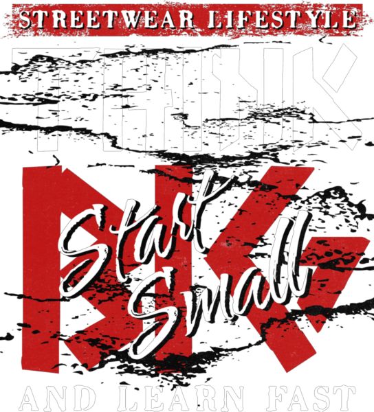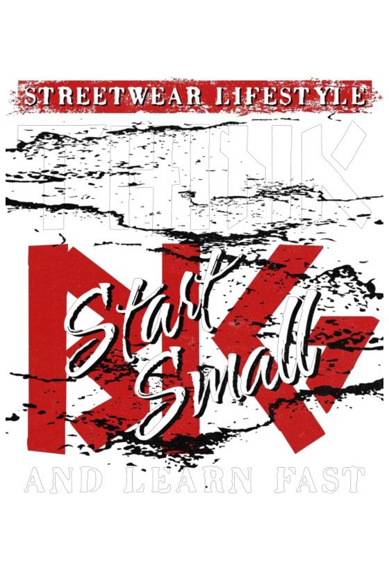 Κείμενα streetwear: «STREETWEAR LIFESTYLE», «THINK BIG», «Start Small», «AND LEARN FAST».
