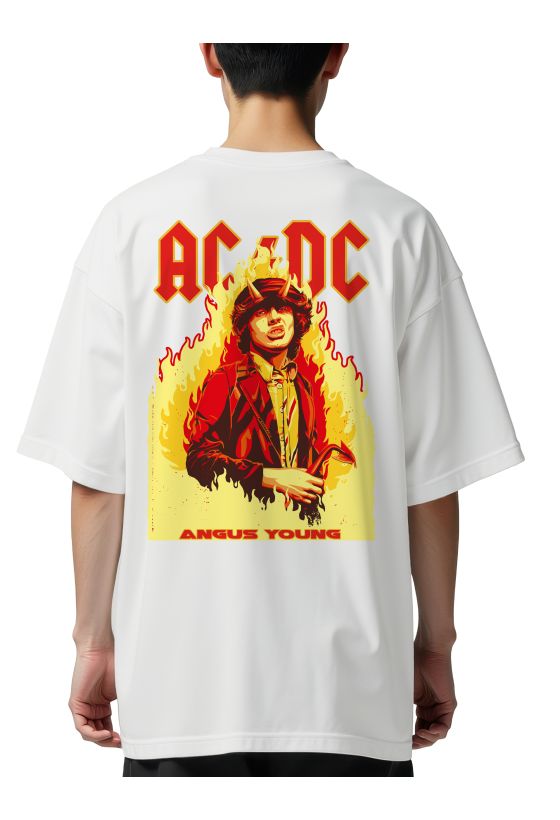 Oversized T-Shirt Angus Young Art1 Rock Avenue White