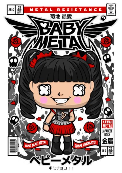 Exώφυλλο BABYMETAL με chibi μέλος, συνδυασμός kawaii και heavy metal.