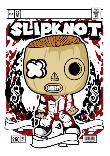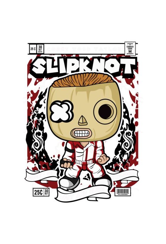 Funko Pop Corey Taylor (Slipknot), μάσκα, κόκκινο/μαύρο φόντο, τίτλοι τραγουδιών.