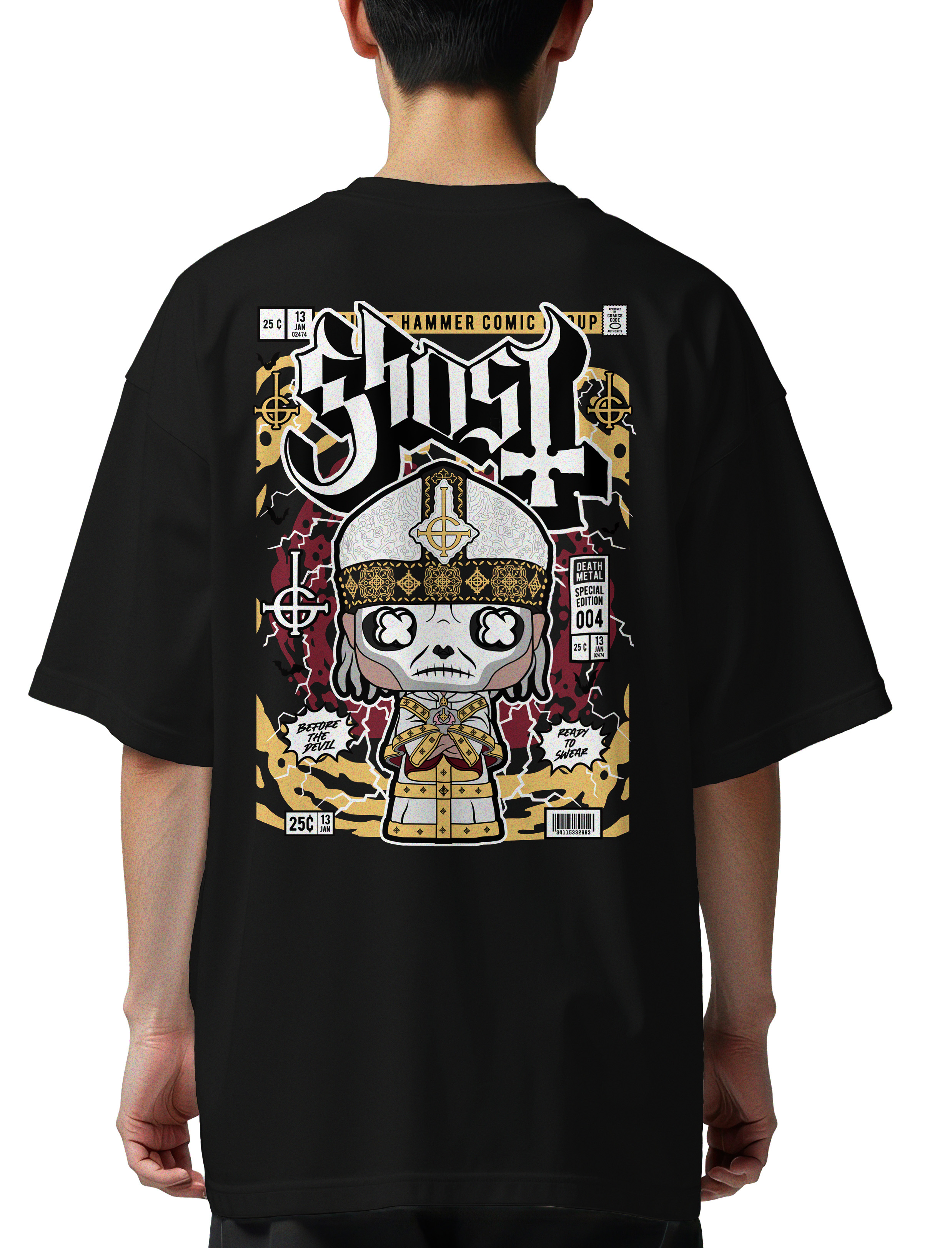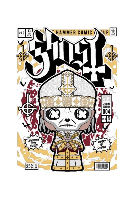 Εξώφυλλο κόμικ με τον Papa Emeritus (Ghost), σε παπικά άμφια με Grucifix, σκοτεινό φόντο με αντίστοιχα σύμβολα.