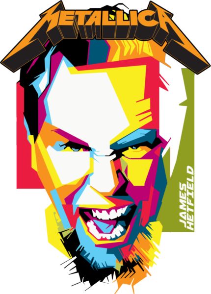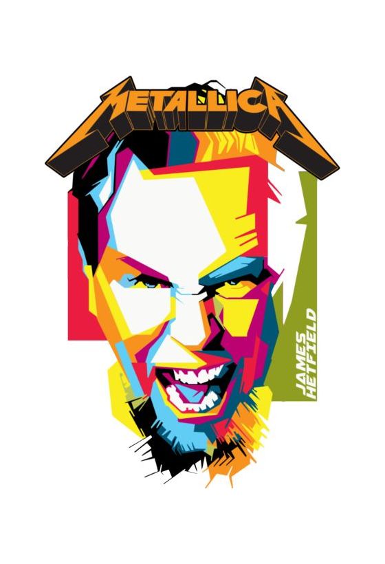 WPAP πορτρέτο James Hetfield με λογότυπο Metallica σε μαύρο φόντο.
