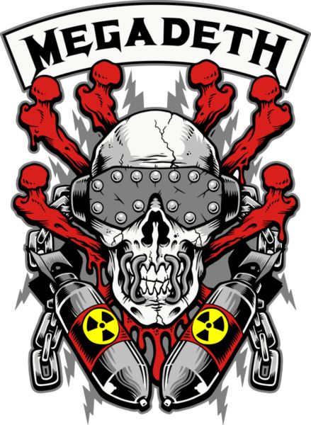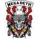 Vic Rattlehead με σταυρωτά οστά και βόμβες, με λογότυπο "MEGADETH".