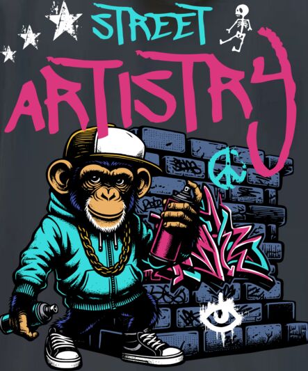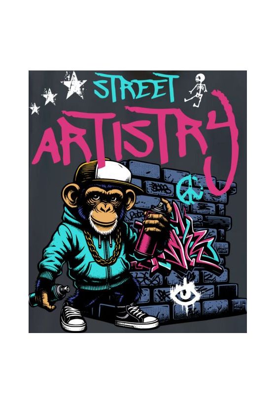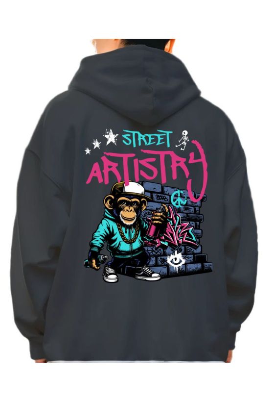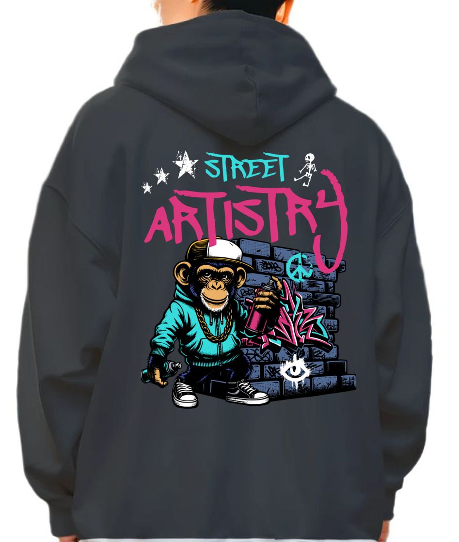Hoodie Chimpanzee character graffiti on the wall brick Pop Culture Black