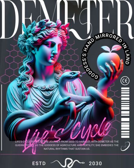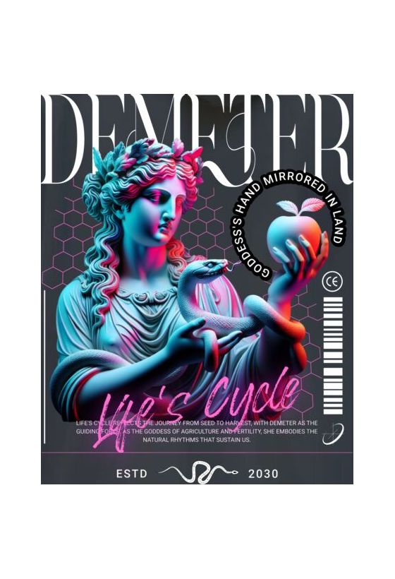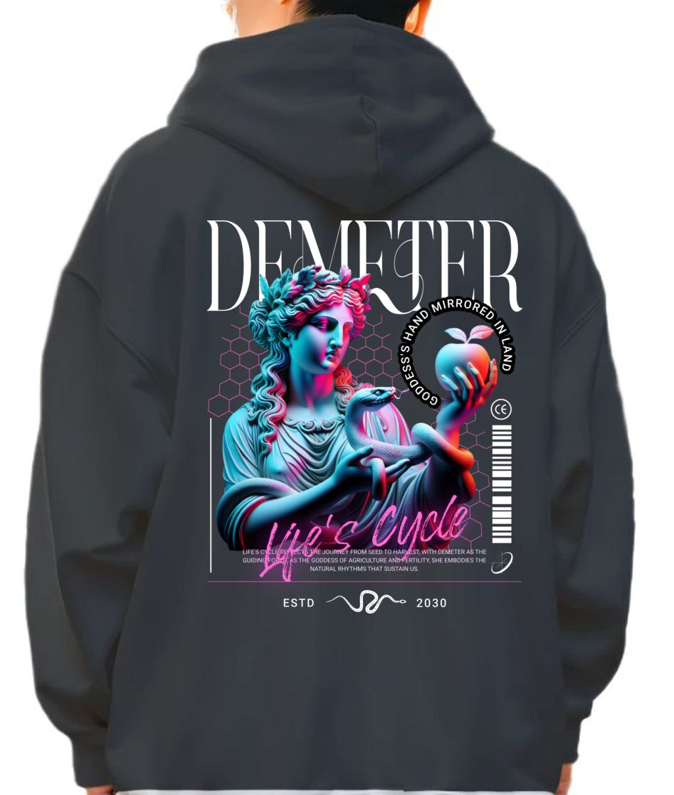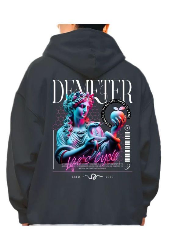 Hoodie Demeter with a snake and an apple. Greek Mythology Neon Y2k Pop Culture Black
