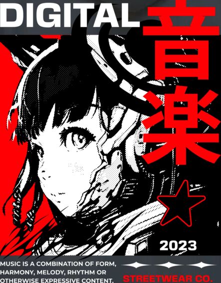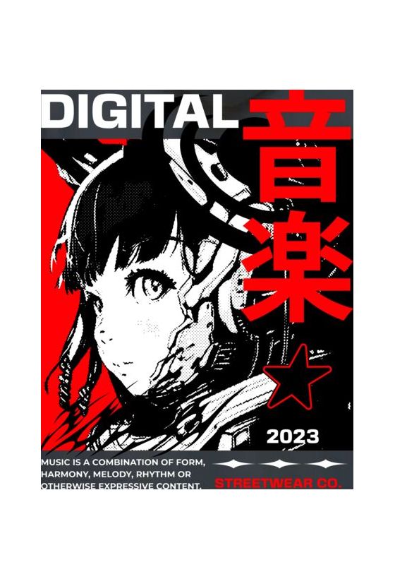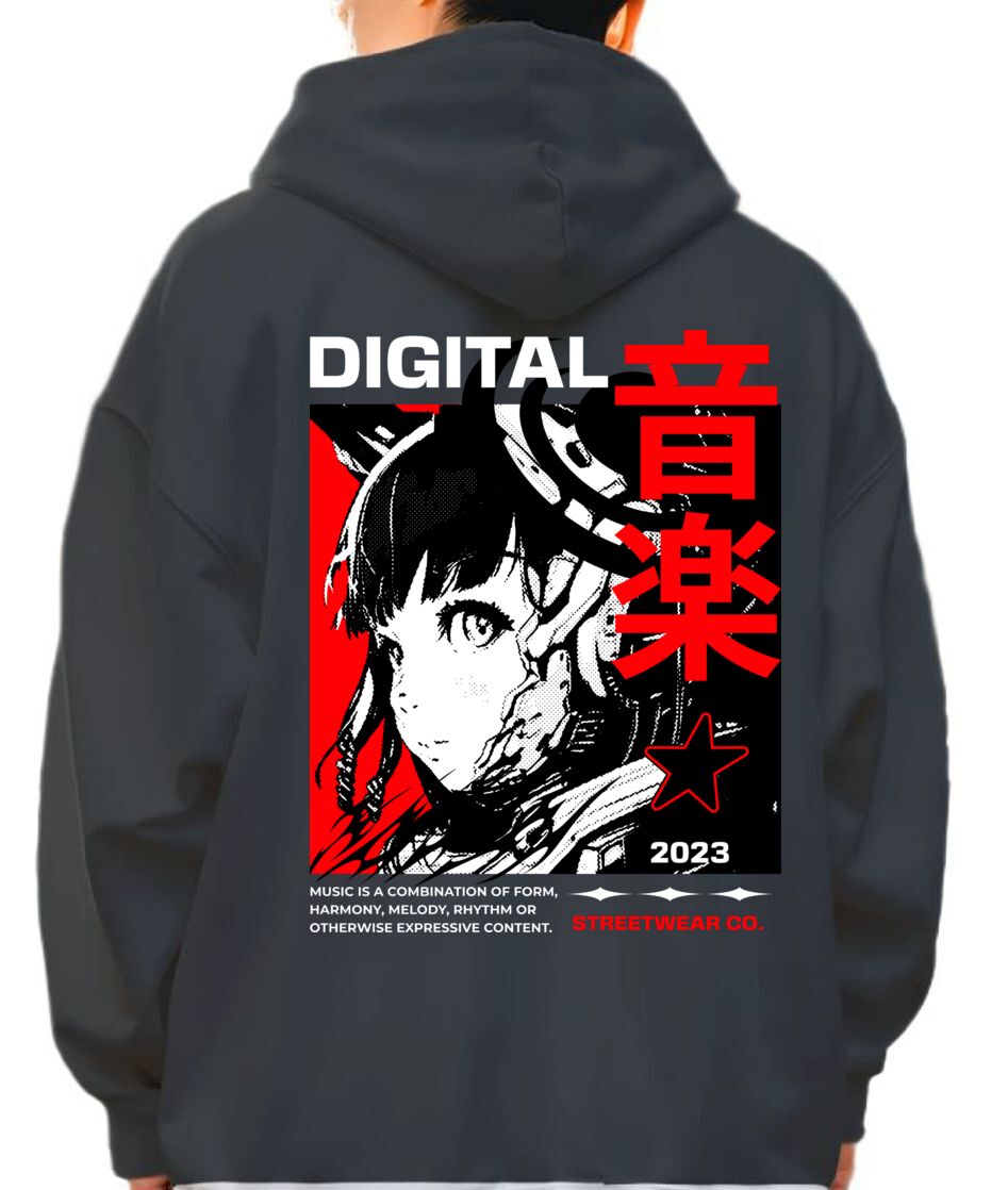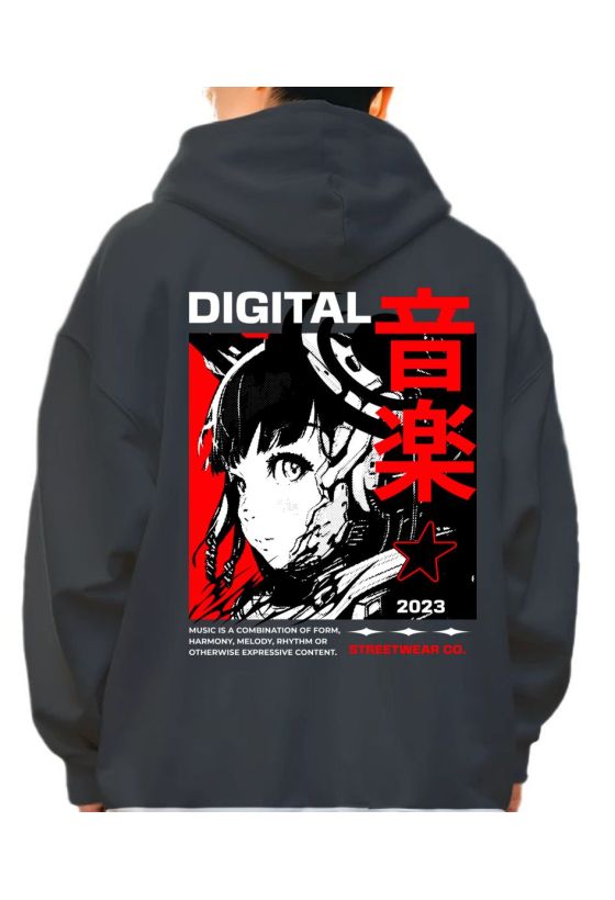 Hoodie Digital Music Streetwear - Japanese Girl Anime Pop Culture Black