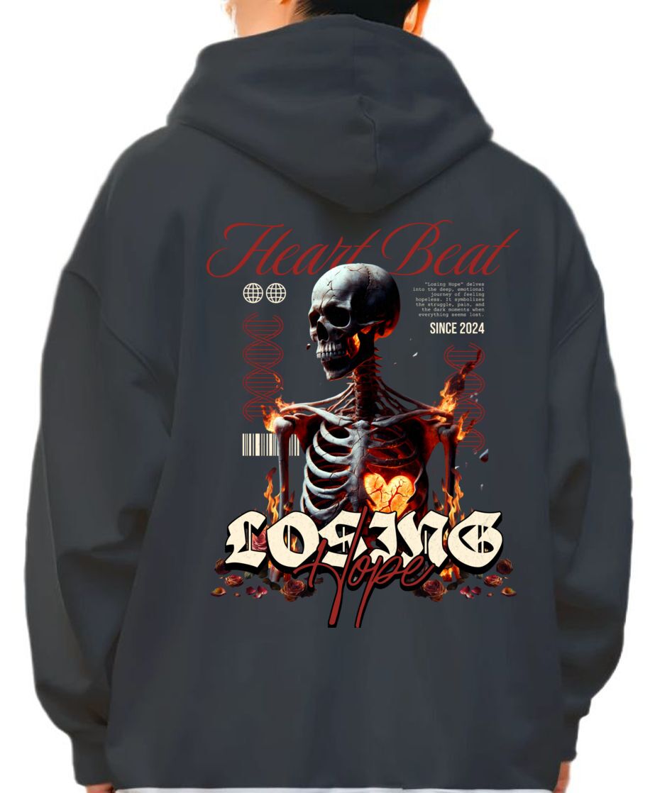 Hoodie Heart Beat - Losing Hope Pop Culture Black
