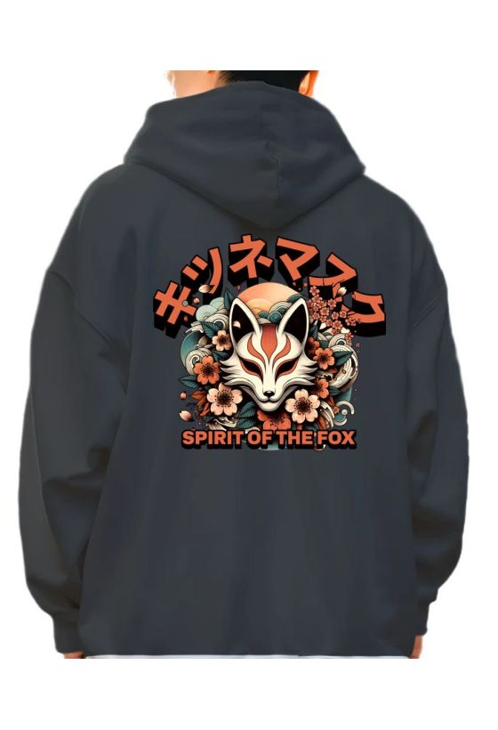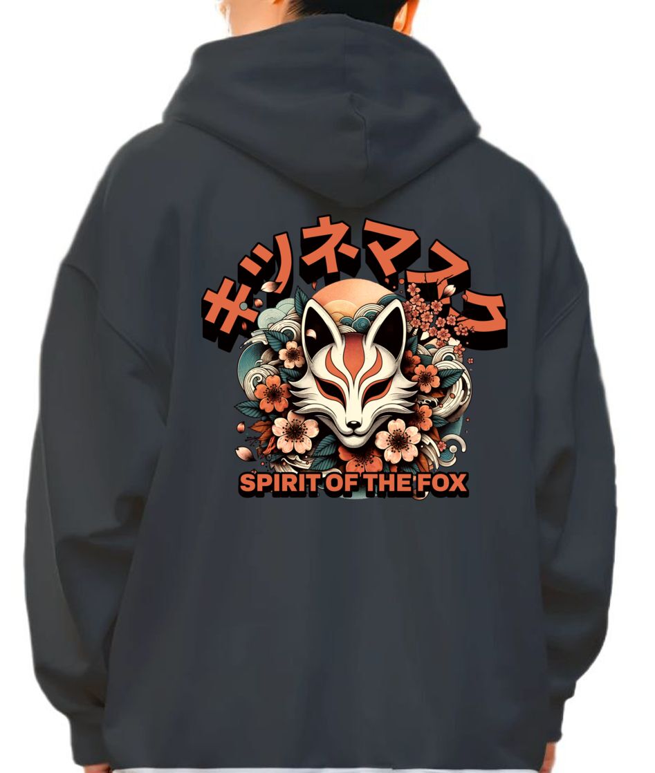 Hoodie Kitsume Japan Mask Pop Culture Black