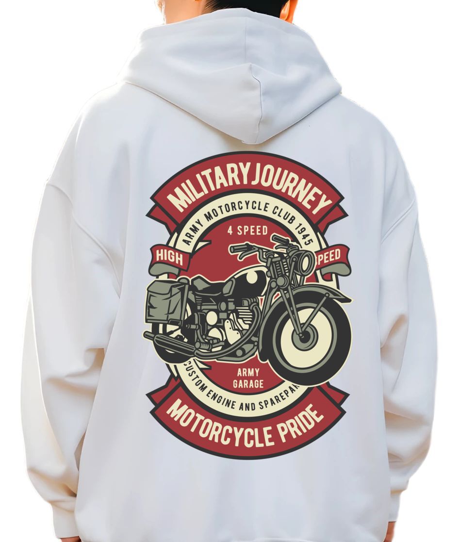 Hoodie Motorcycle Military Pop Culture White