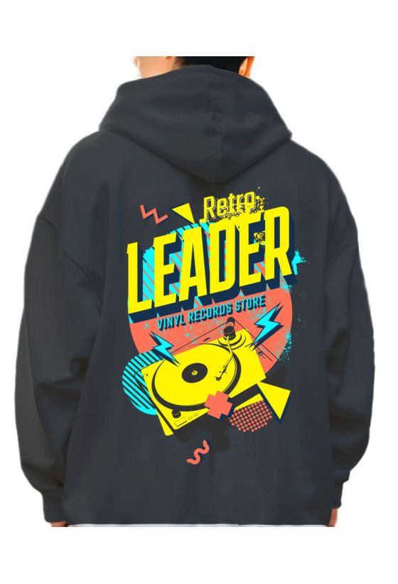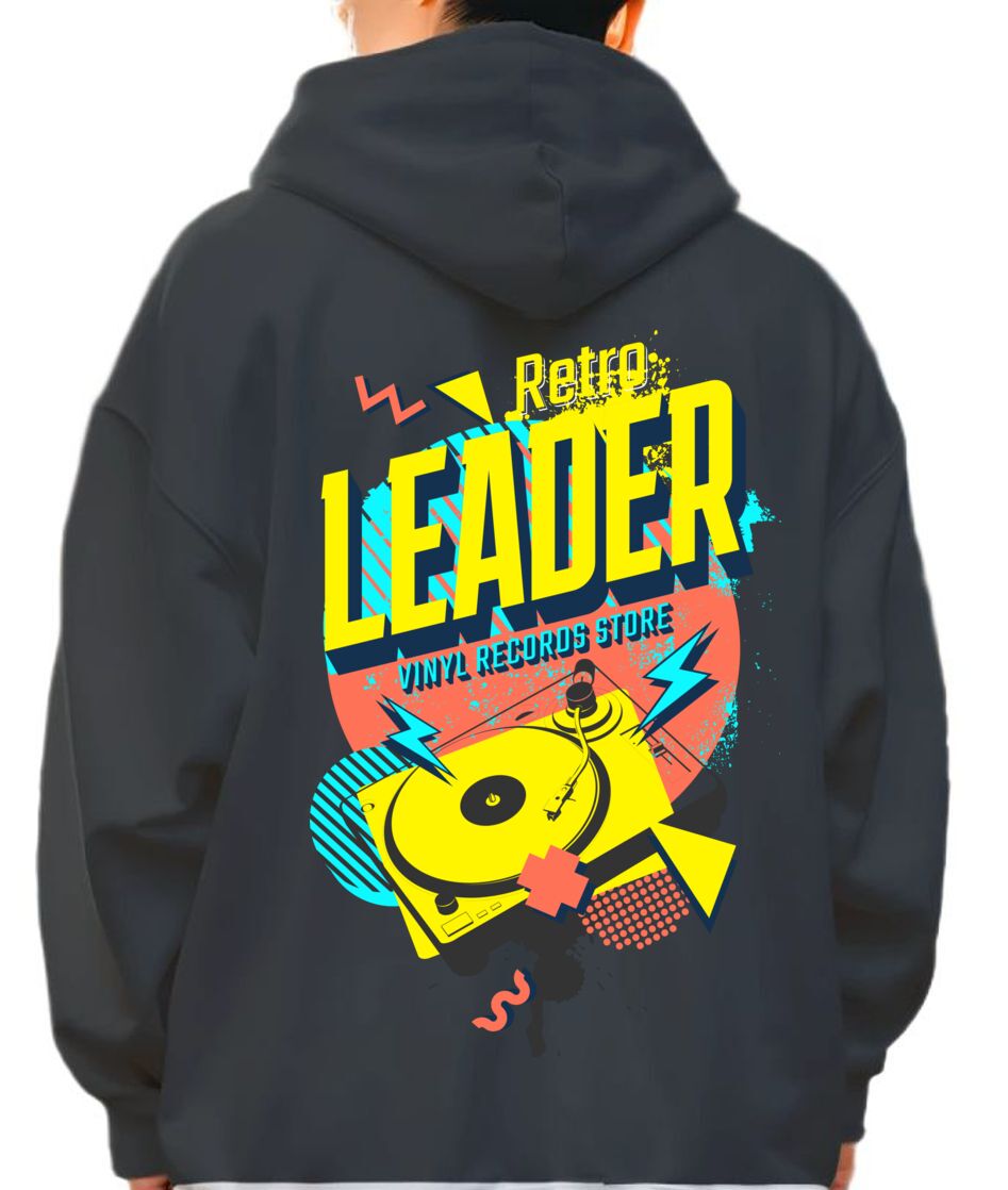 Hoodie Retro Leader Vinyl Records Pop Culture Black