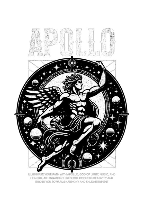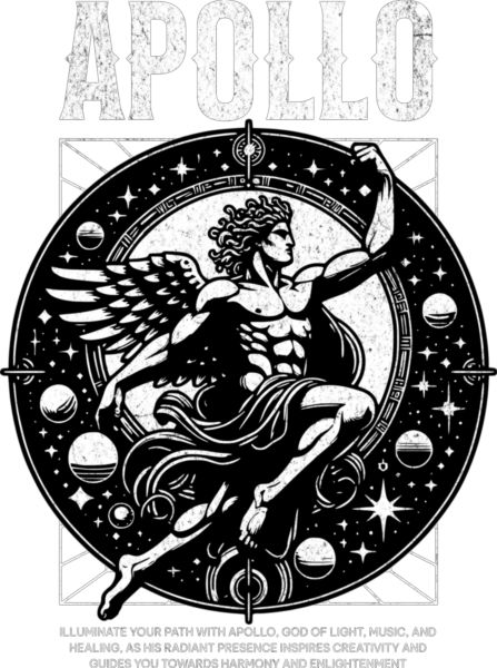 Άγαλμα Απόλλωνα με φτερά σε ουράνιο κύκλο. Θέμα δημιουργικότητας και φώτισης.