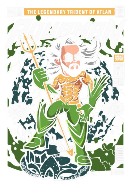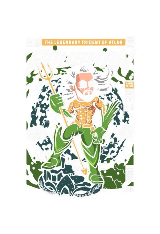 Εξώφυλλο κόμικ Aquaman (Jason Momoa στυλ) με τρίαινα, πλοκάμια και τίτλο «LEGENDARY TRIDENT OF ATLAN».