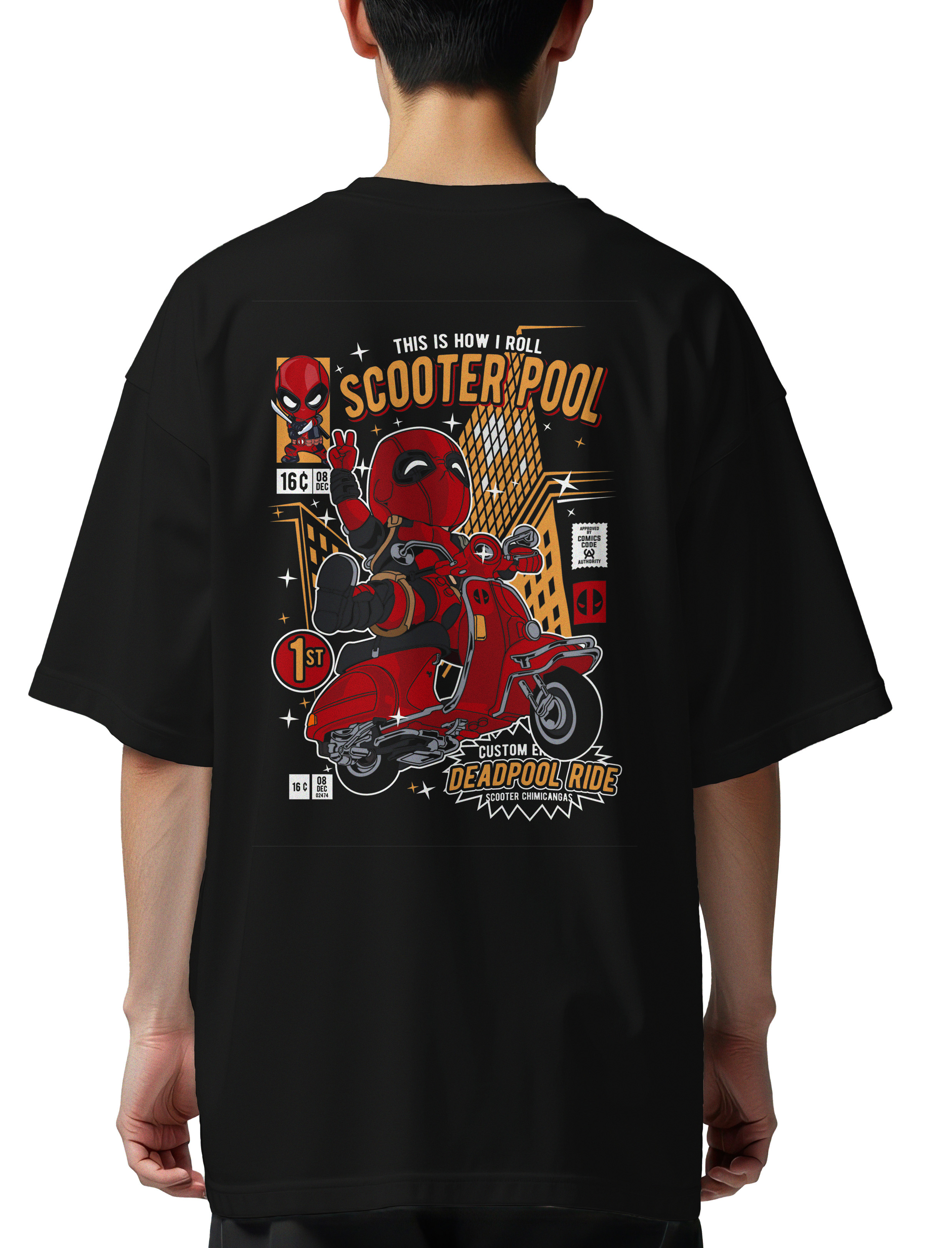 Oversized T-Shirt Deadpool Scooter Pop Culture Black