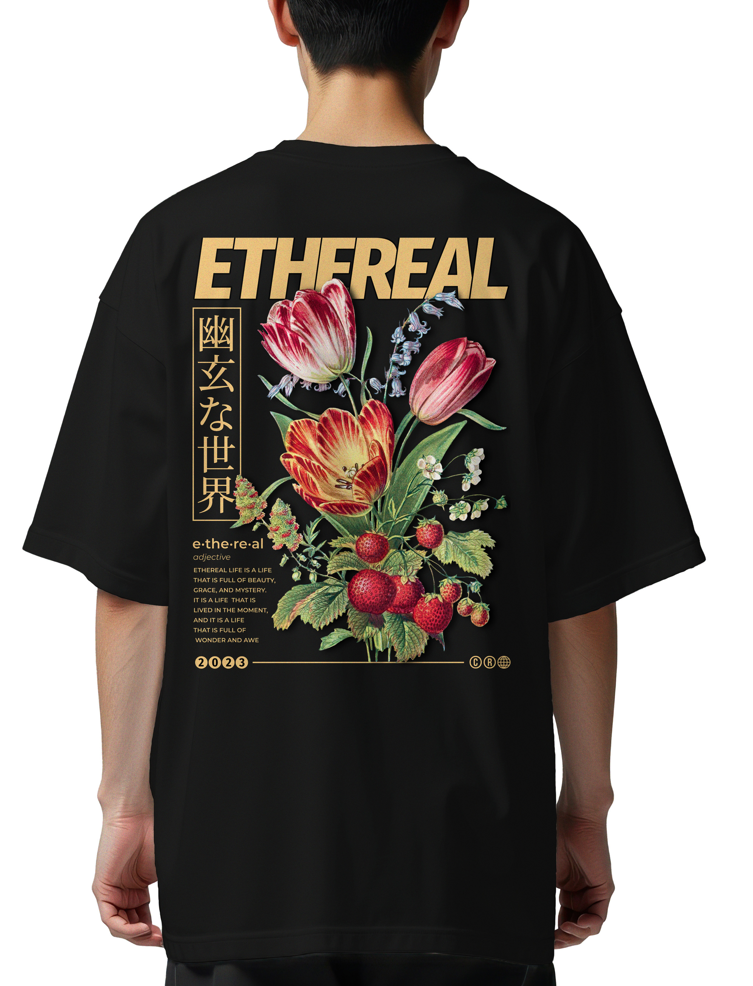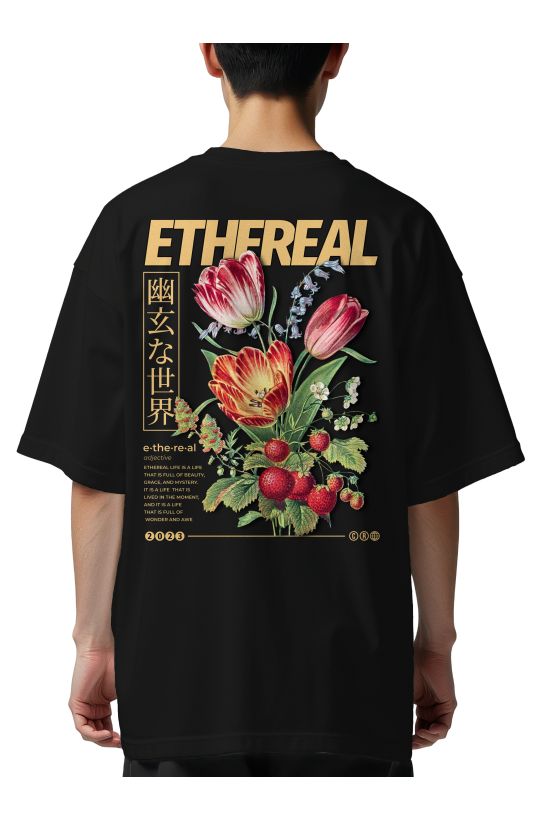 Oversized T-Shirt Ethereal Flowers Pop Culture Black