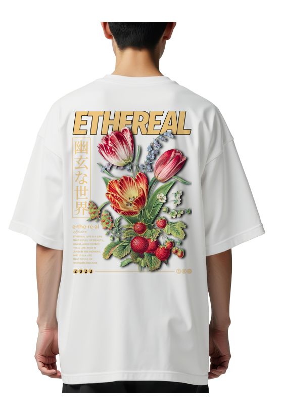 Oversized T-Shirt Ethereal Flowers Pop Culture White