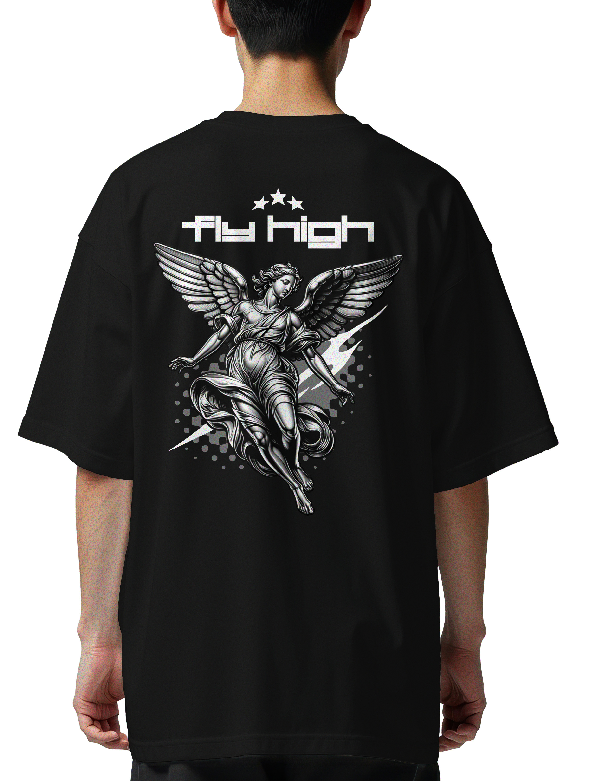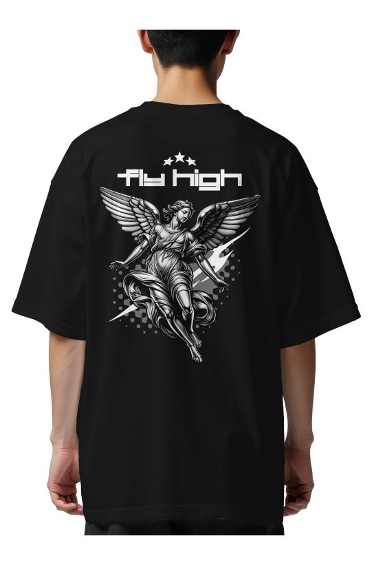 Oversized T-Shirt Fly High Angel Pop Culture Black