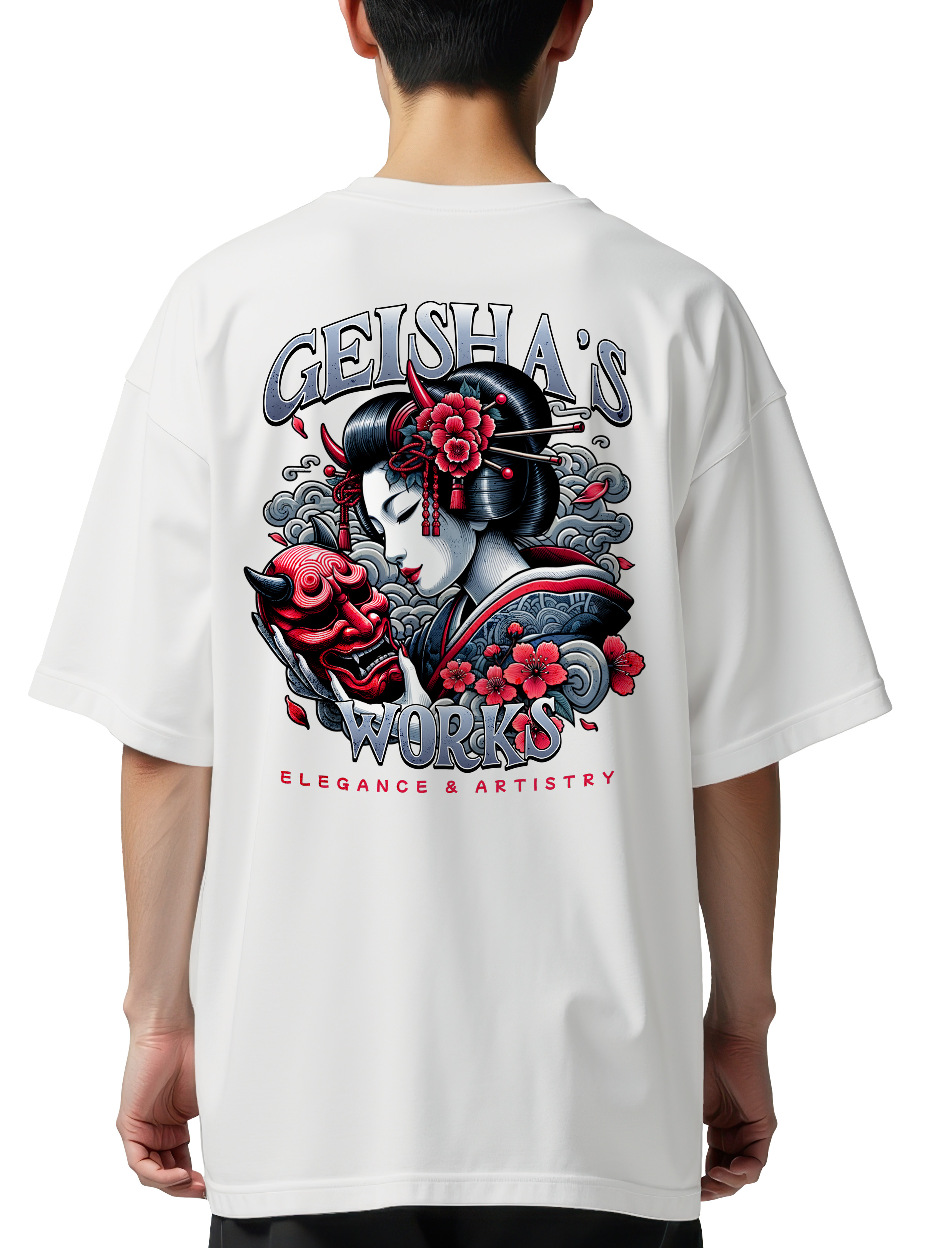 Oversized T-Shirt Geisha Devil Pop Culture White