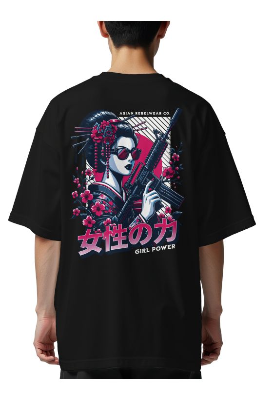 Oversized T-Shirt Geisha Gun Pop Culture Black