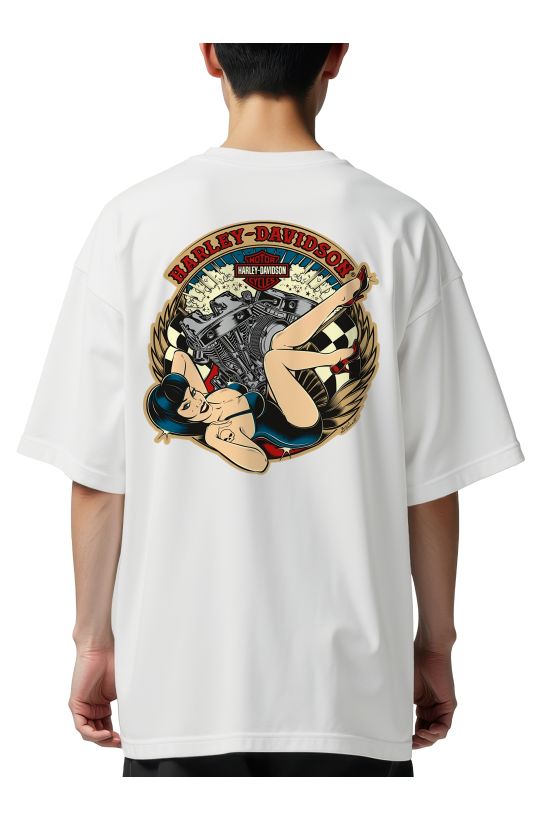 Oversized T-Shirt Harley Davidson Doll Pop Culture White