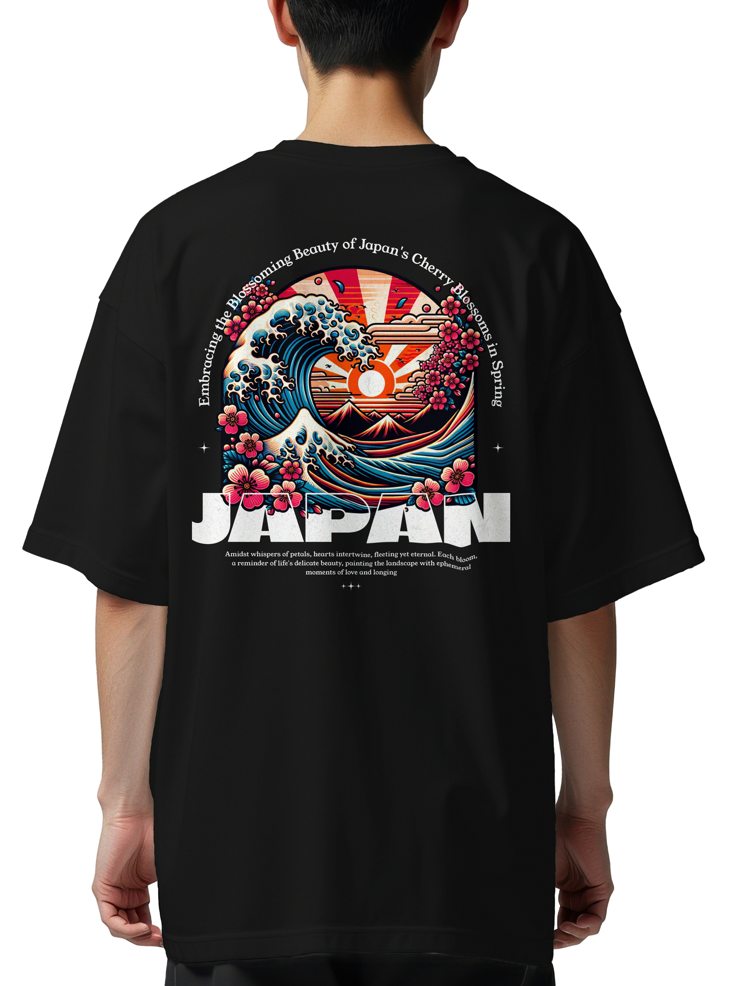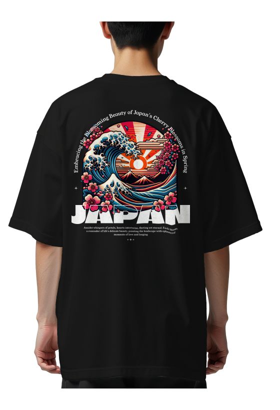 Oversized T-Shirt Japan Cherry Blossoms Pop Culture Black