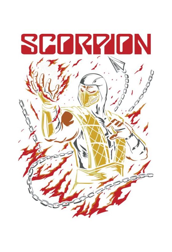 Scorpion με κίτρινη-μαύρη στολή, φλεγόμενο κρανίο και αλυσίδες.