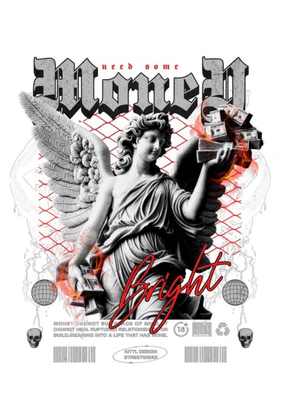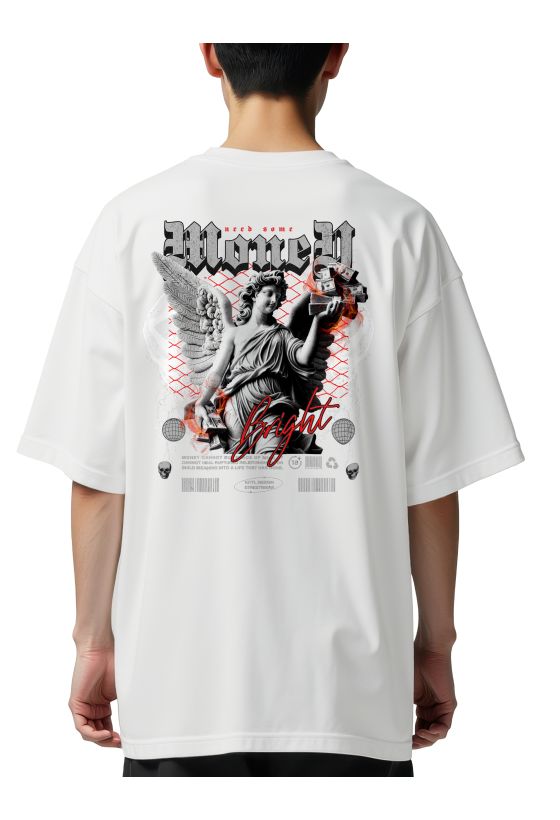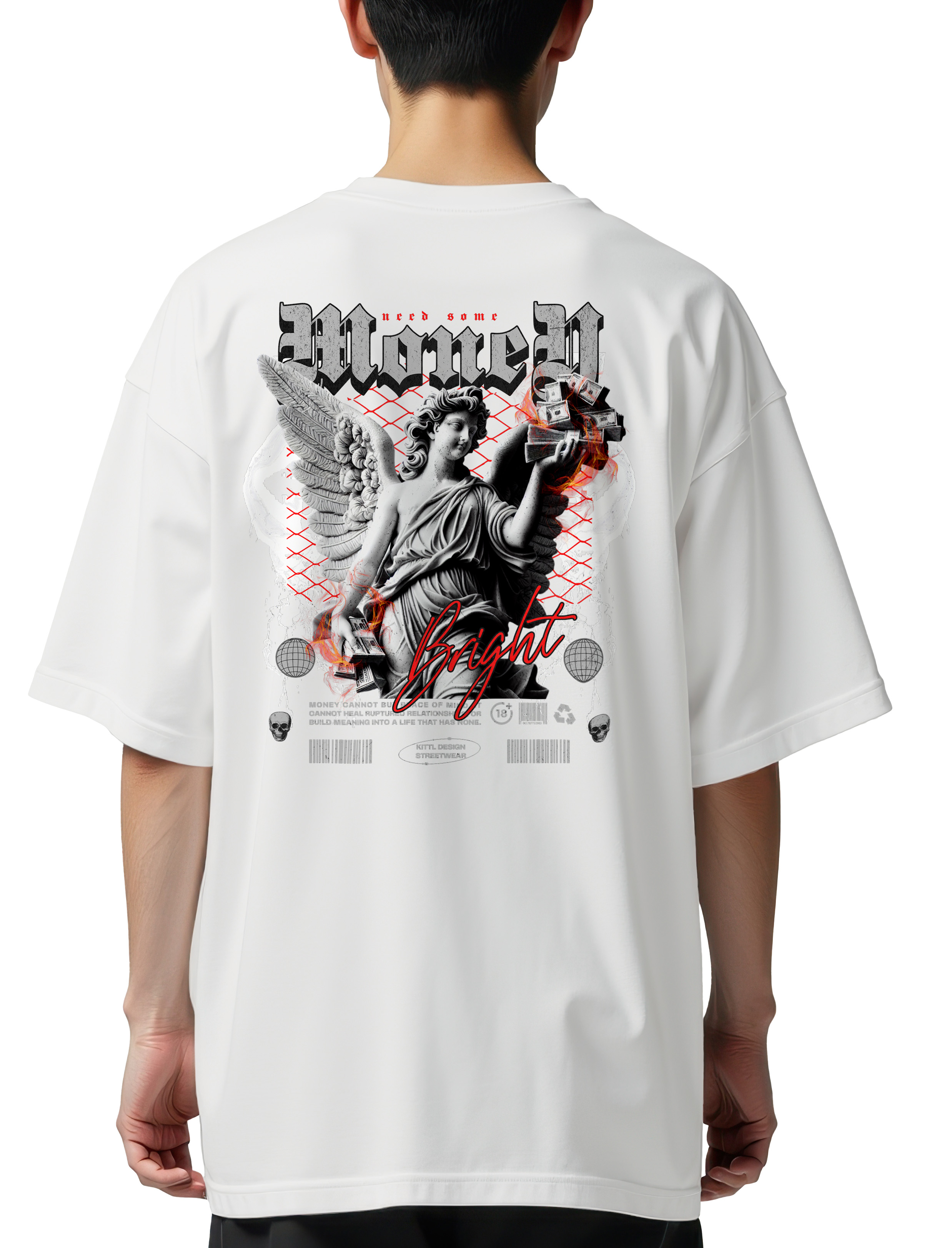 Oversized T-Shirt Need Money Angel Pop Culture White