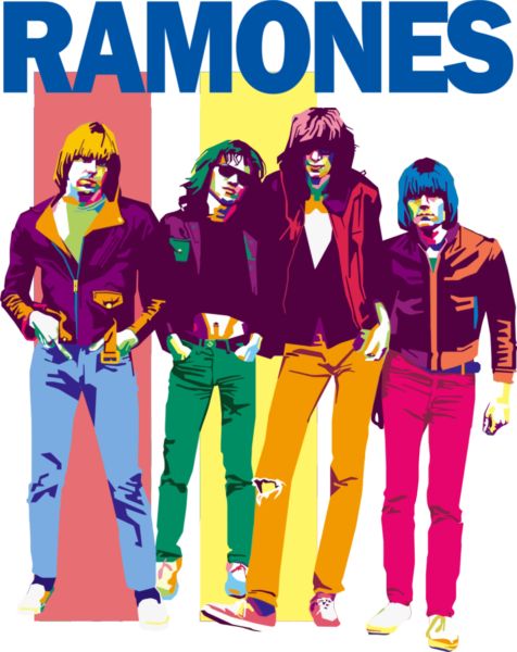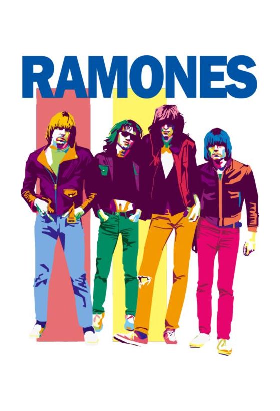 Ramones σε pop art στυλ, μπλε λογότυπο στην κορυφή.