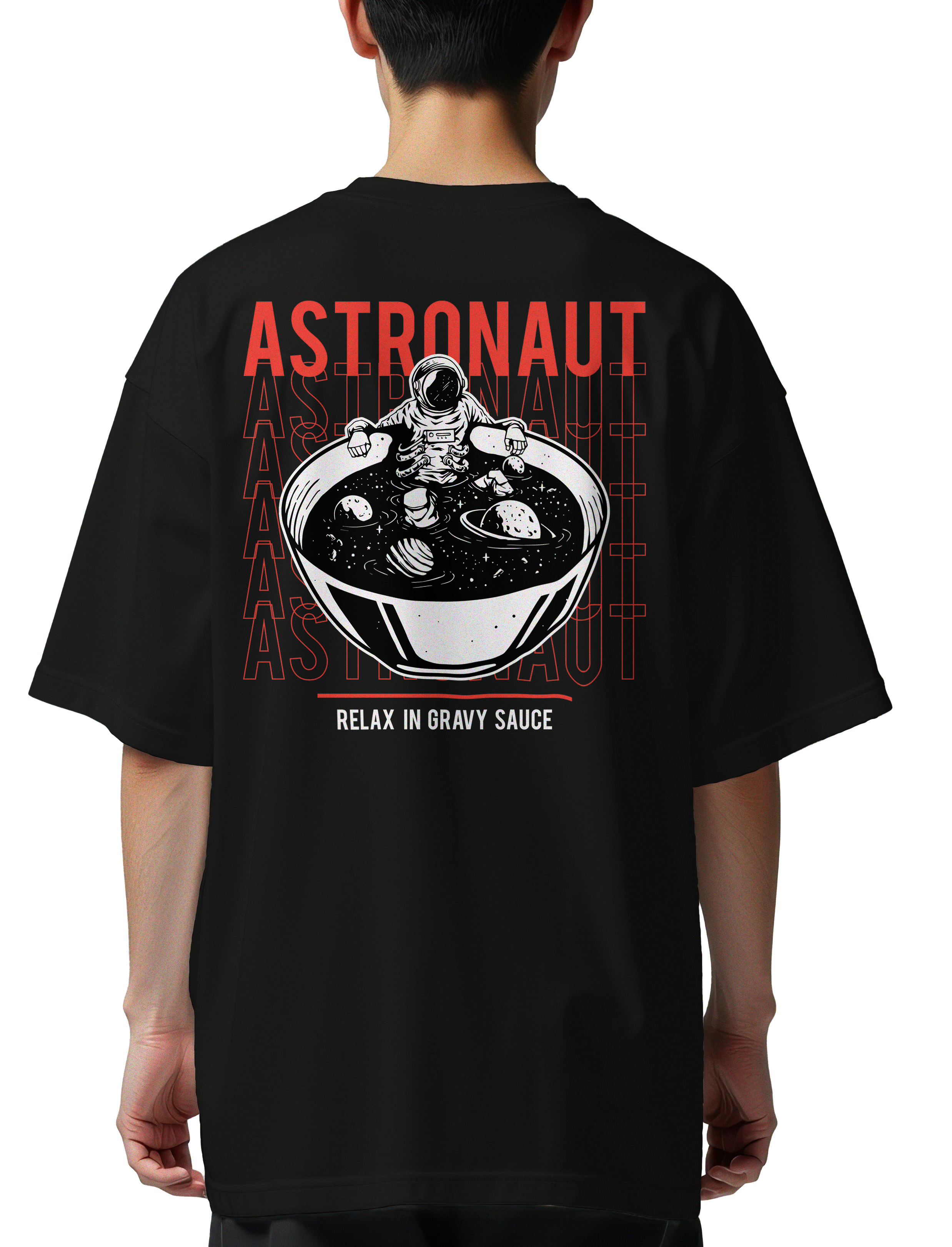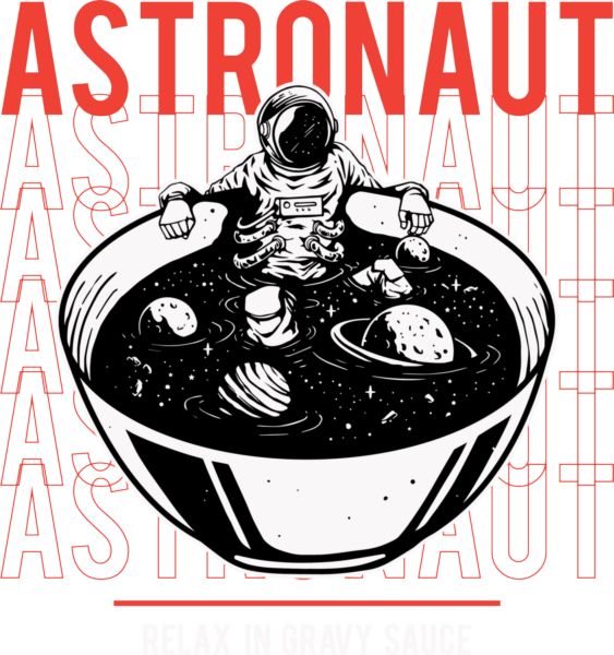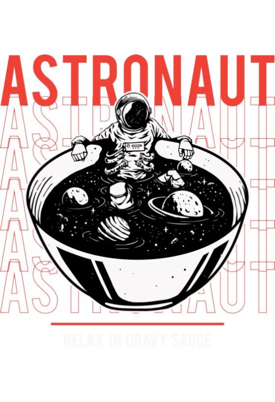 Αστροναύτης που επιπλέει σε μπολ με πλανήτες, κείμενο "ΑΣΤΡΟΝΑΥΤΗΣ".