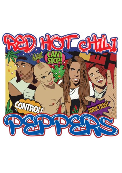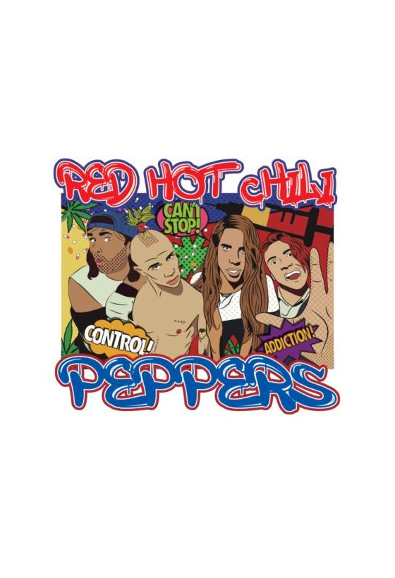 RHCP σε κόμικ στυλ με quotes και στοιχεία pop art.