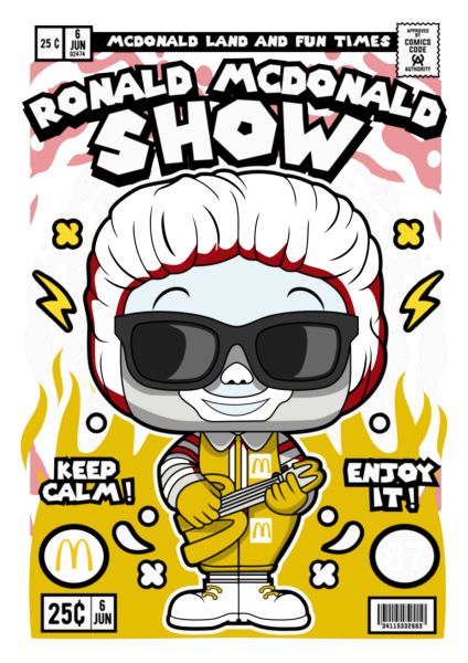 Ronald McDonald σε κιθάρα, κόμικ εξώφυλλο "Ronald McDonald Show".
