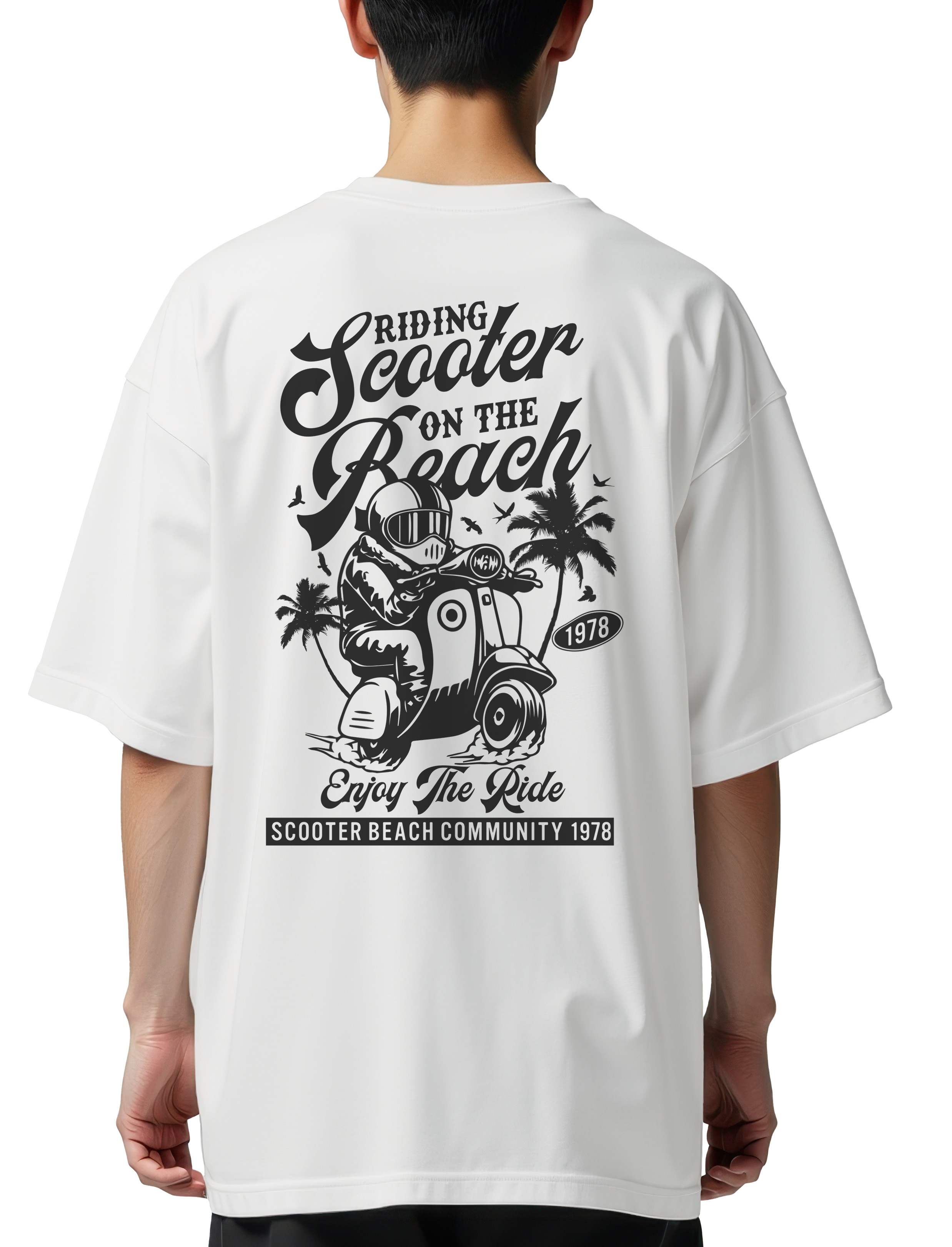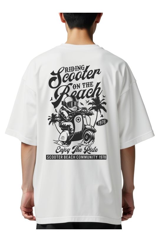 Oversized T-Shirt Scooter on the beach Pop Culture White