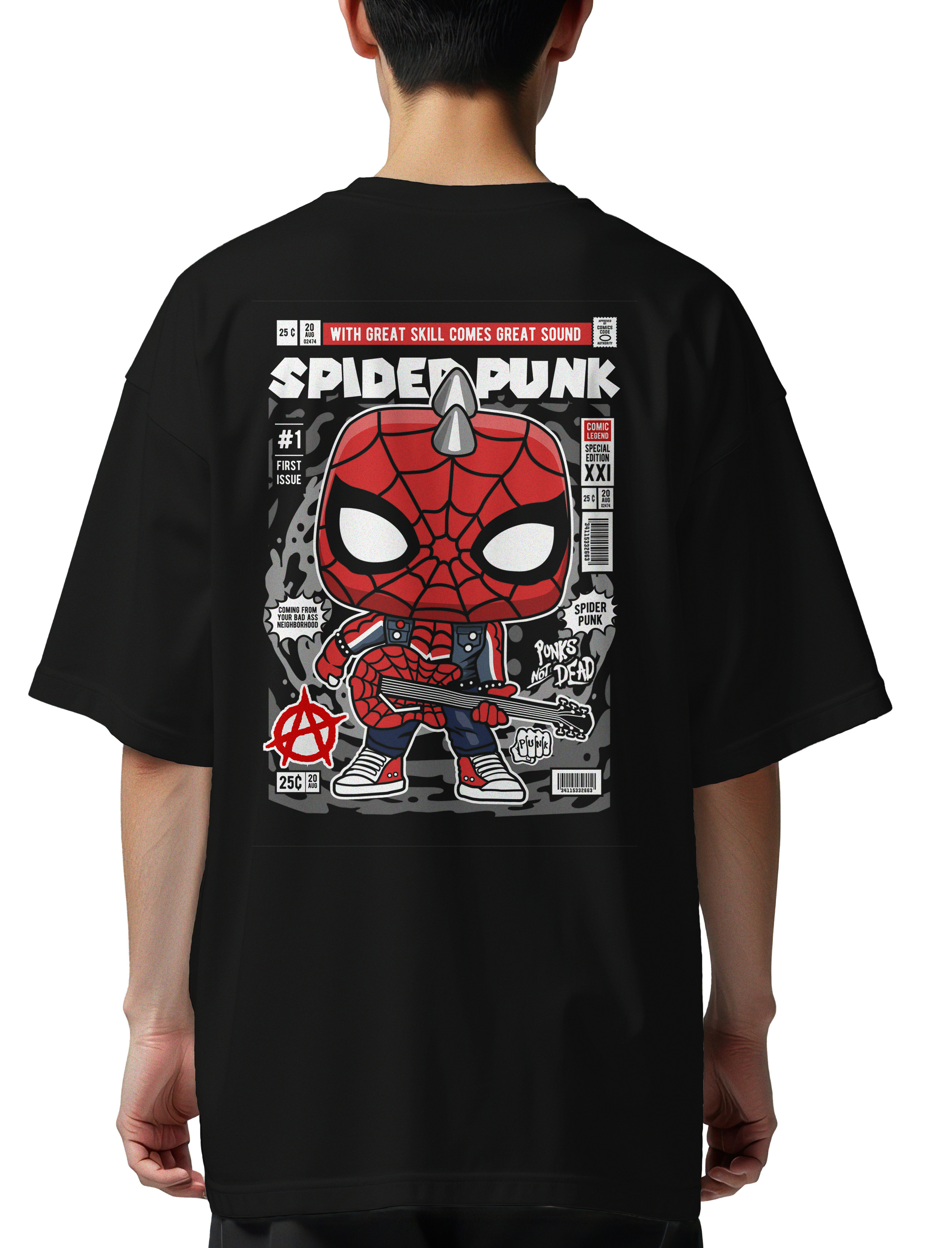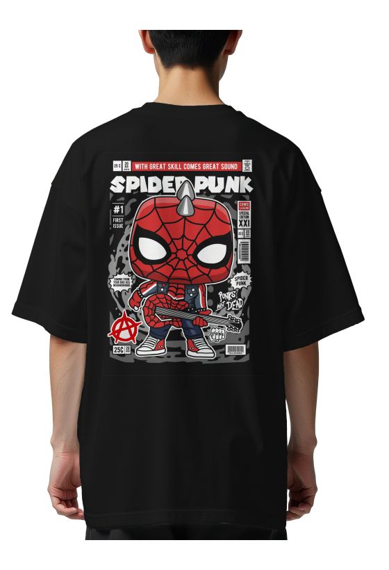 Oversized T-Shirt Spider Punk Pop Culture Black