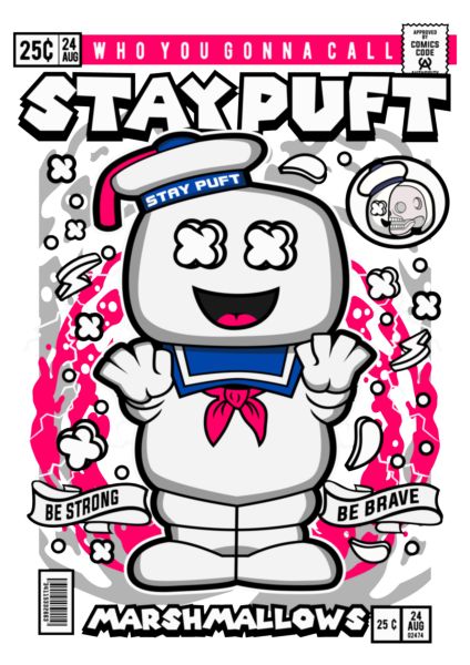 Stay Puft (Ghostbusters) σε κόμικ στυλ, quotes "Be Strong", "Be Brave".