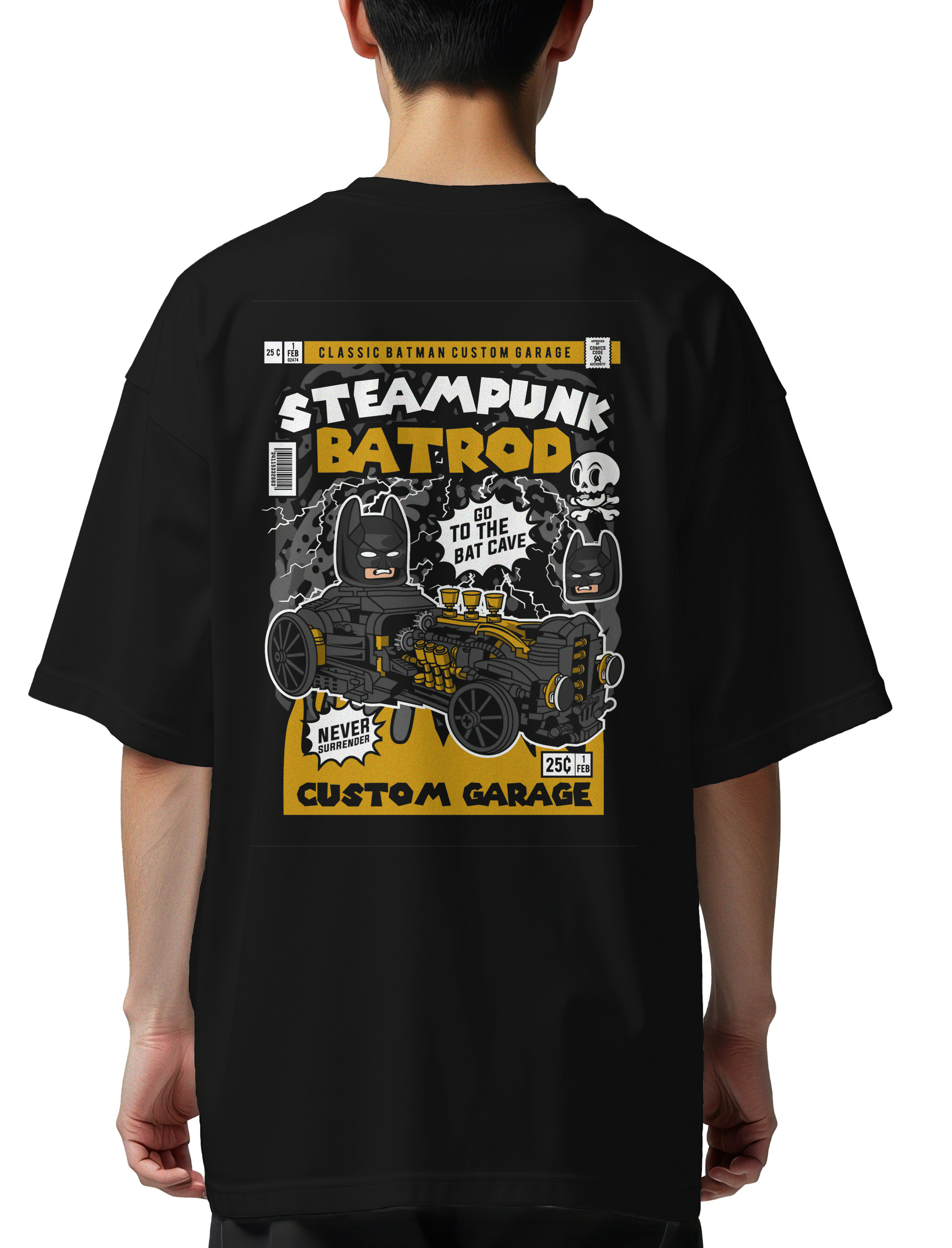 Oversized T-Shirt Steampunk Bat Rod Pop Culture Black