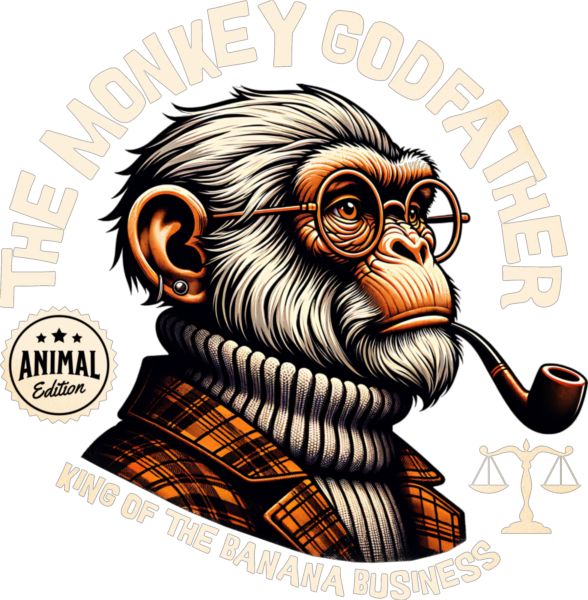 «Monkey Godfather»: πίθηκος με γυαλιά, σακάκι και πίπα. Θέμα ισχύος.