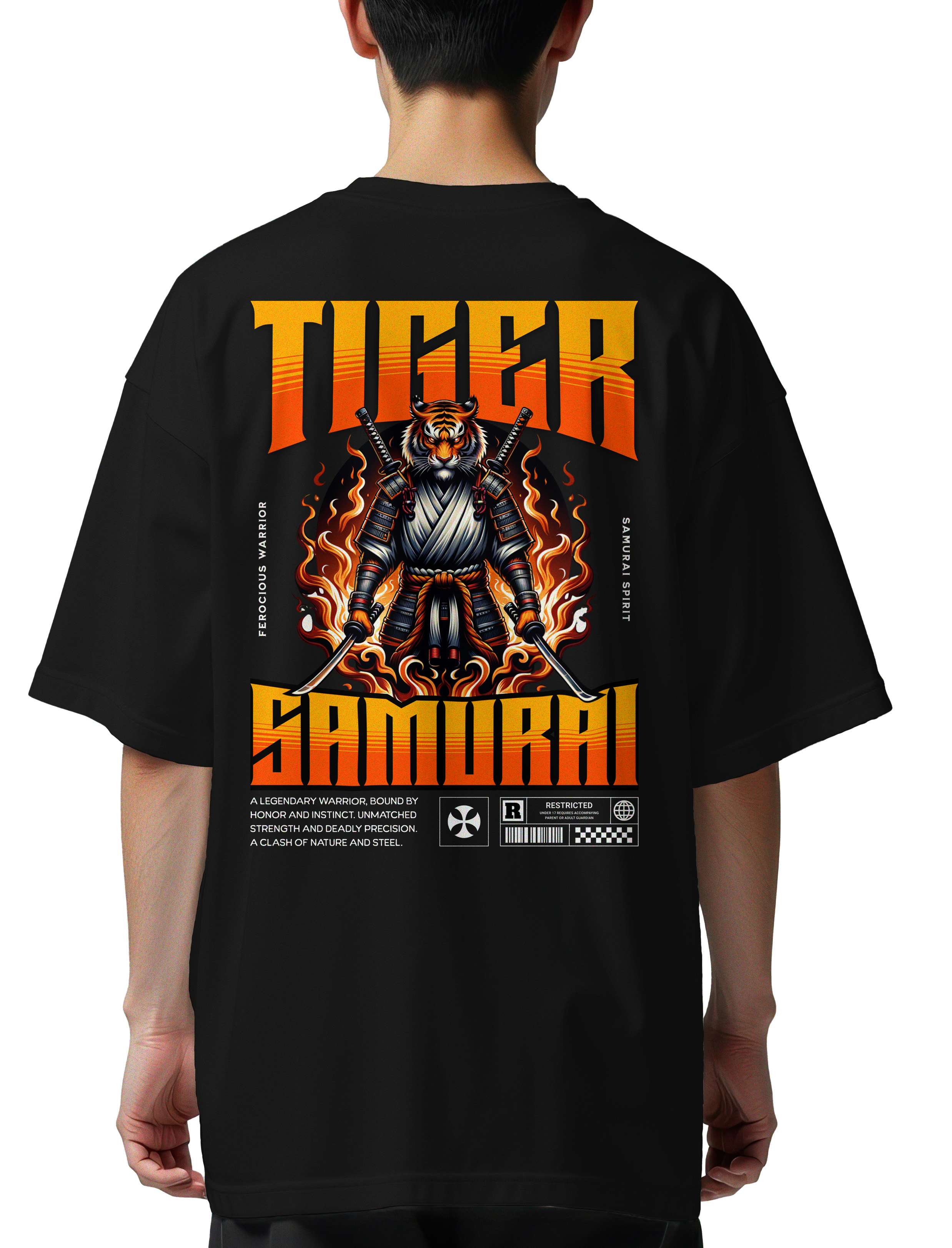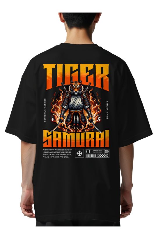 Oversized T-Shirt Tiger Samurai Pop Culture Black