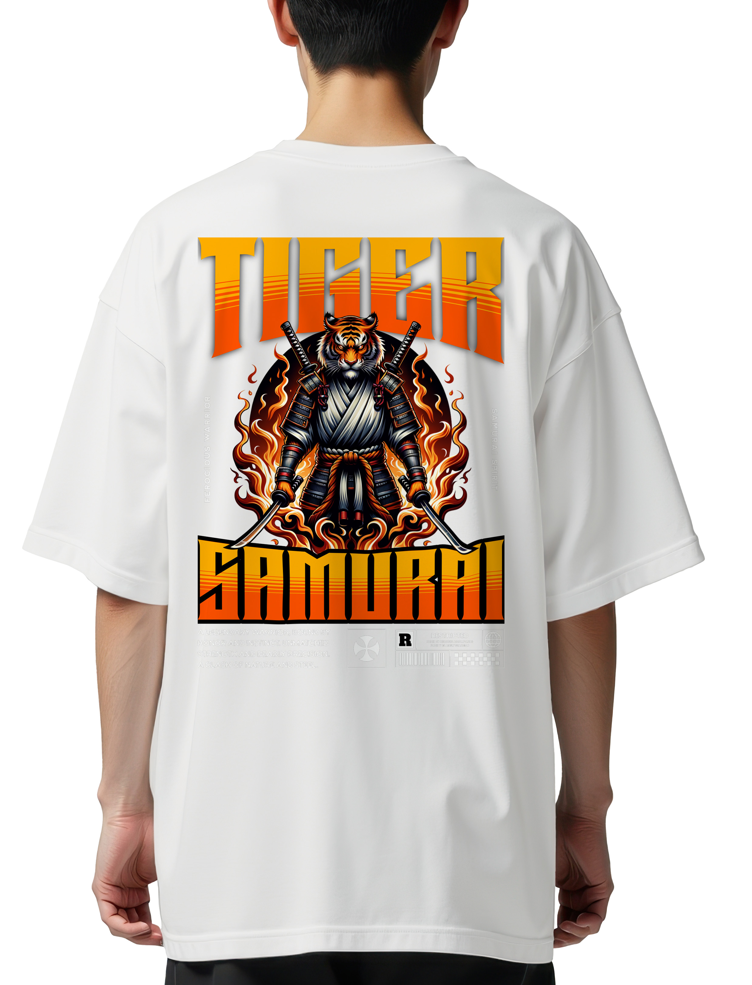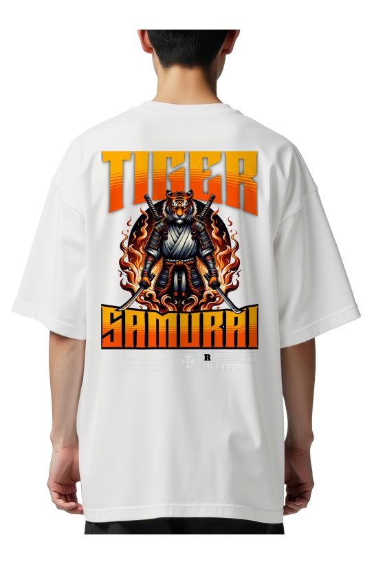 Oversized T-Shirt Tiger Samurai Pop Culture White